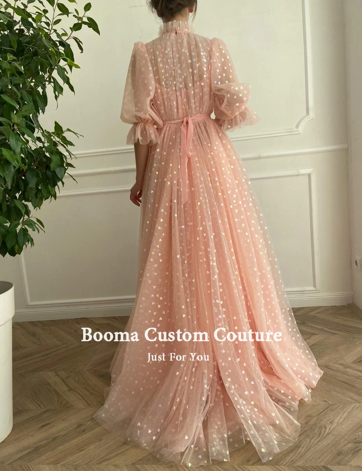 Женское вечернее платье из фатина Booma, красно-розовое платье с коротким рукавом и высоким воротом, ТРАПЕЦИЕВИДНОЕ ПЛАТЬЕ для свадебной вечеринки, длинные официальные платья, лето 2021