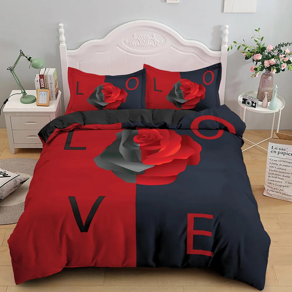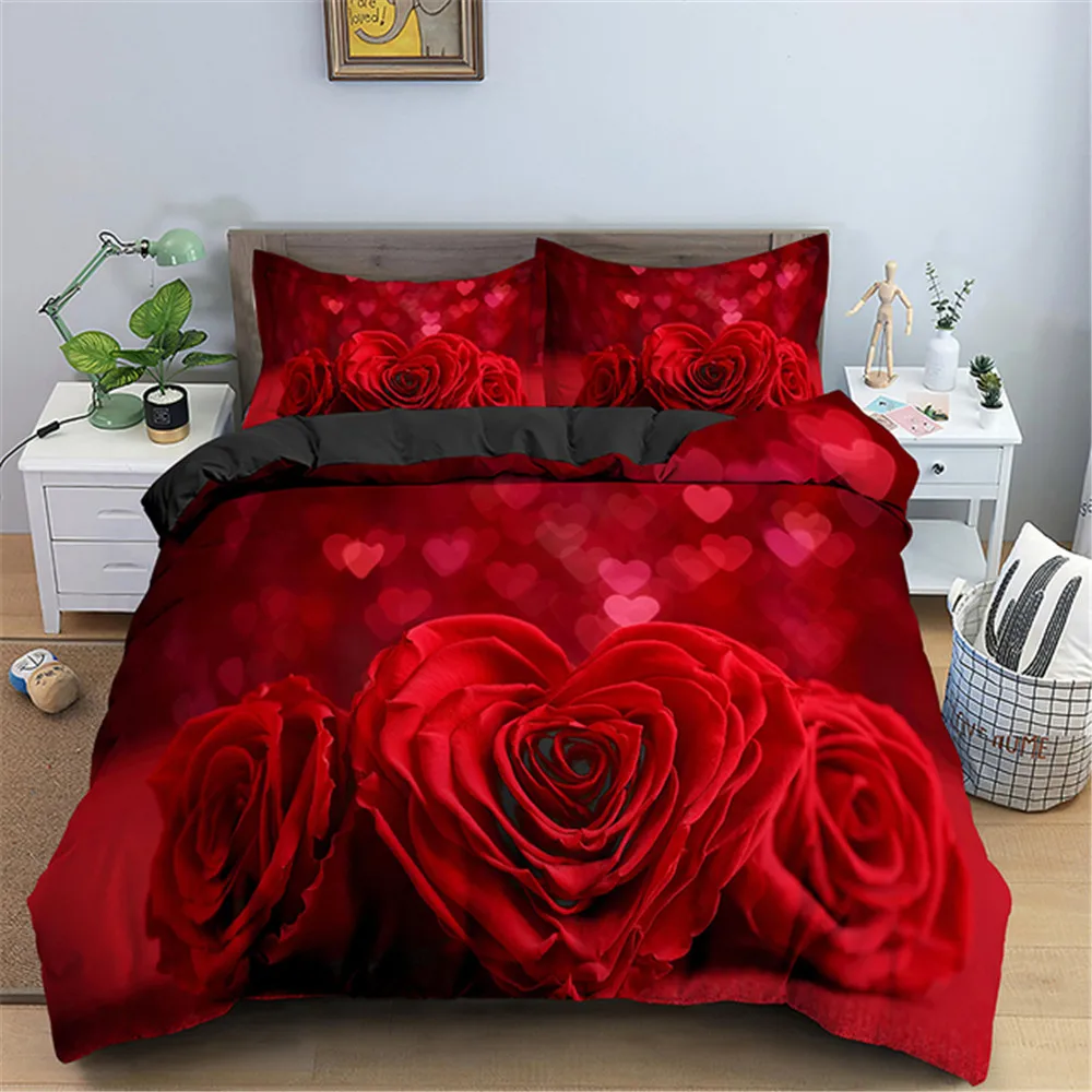 Романтический Комплект постельного белья для пар на День святого Валентина, пододеяльник с рисунком в виде двух предметов: король, королева, любовь, сердце, пододеяльник, розы, комплекты для двуспальной кровати, европейский размер