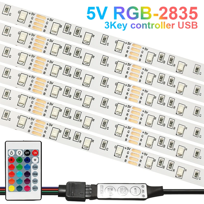 Гибкая светодиодная лента SMD2835 RGB с 3 кнопками, LED лампа с дистанционным управлением по Bluetooth, освещение для фона телевизора, LED Декор, 5 в постоянного тока