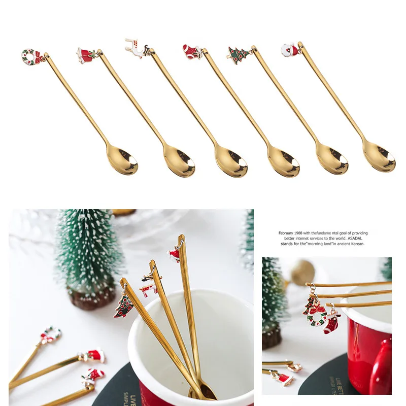 Новогодние металлические кофейные ложки на Рождество, украшения для...