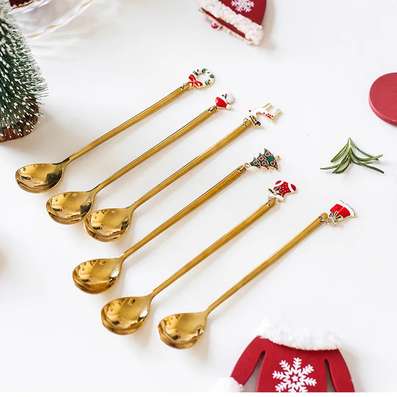 Новогодние рождественские ложки из нержавеющей стали 2021, ложка дл...