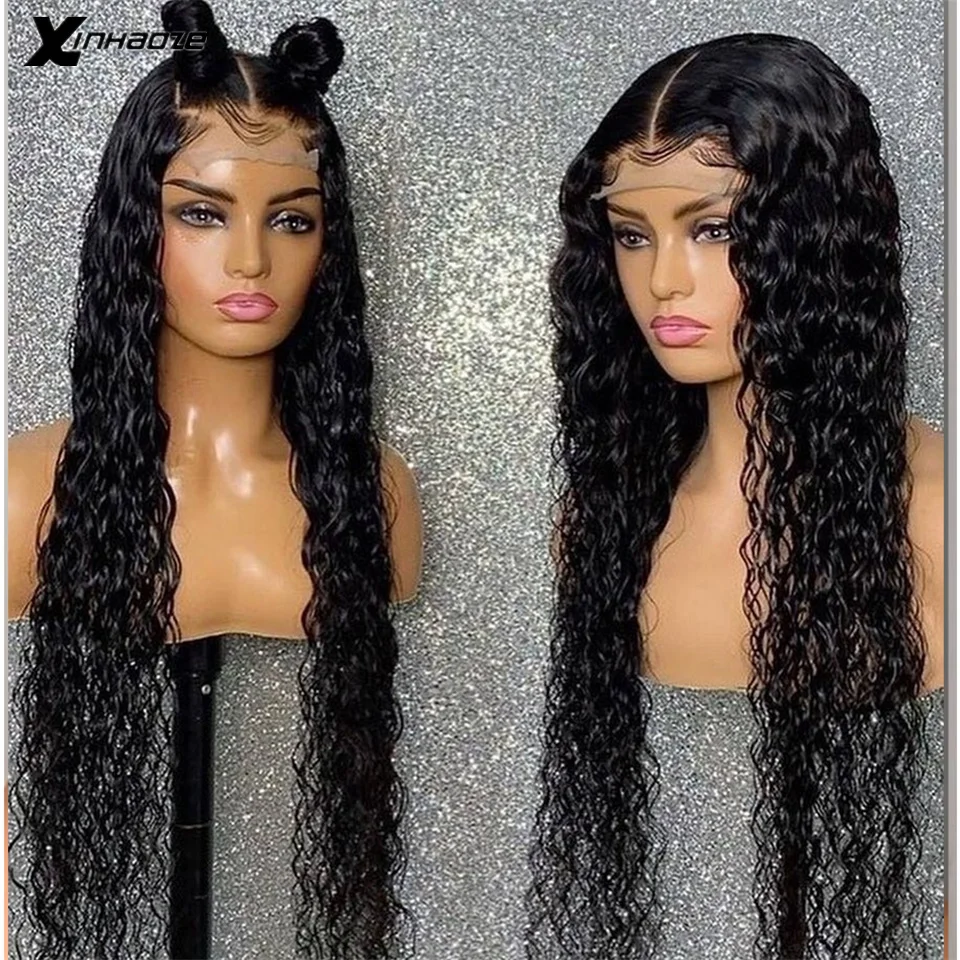 Парик из натуральных волос с глубокой волной, на сетке спереди, парик на сетке спереди 13x 4, парик на сетке спереди с выщипанными отбеленными узелками, парики на водной волне спереди