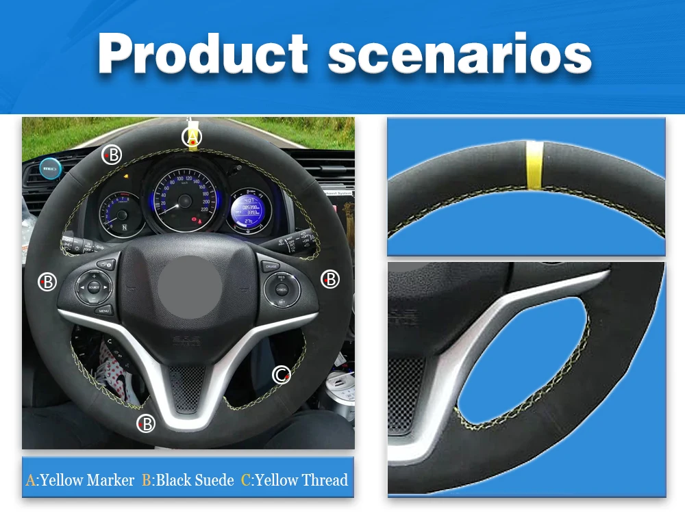 Черная замша ручная строчка для Honda чехол рулевого колеса автомоб...