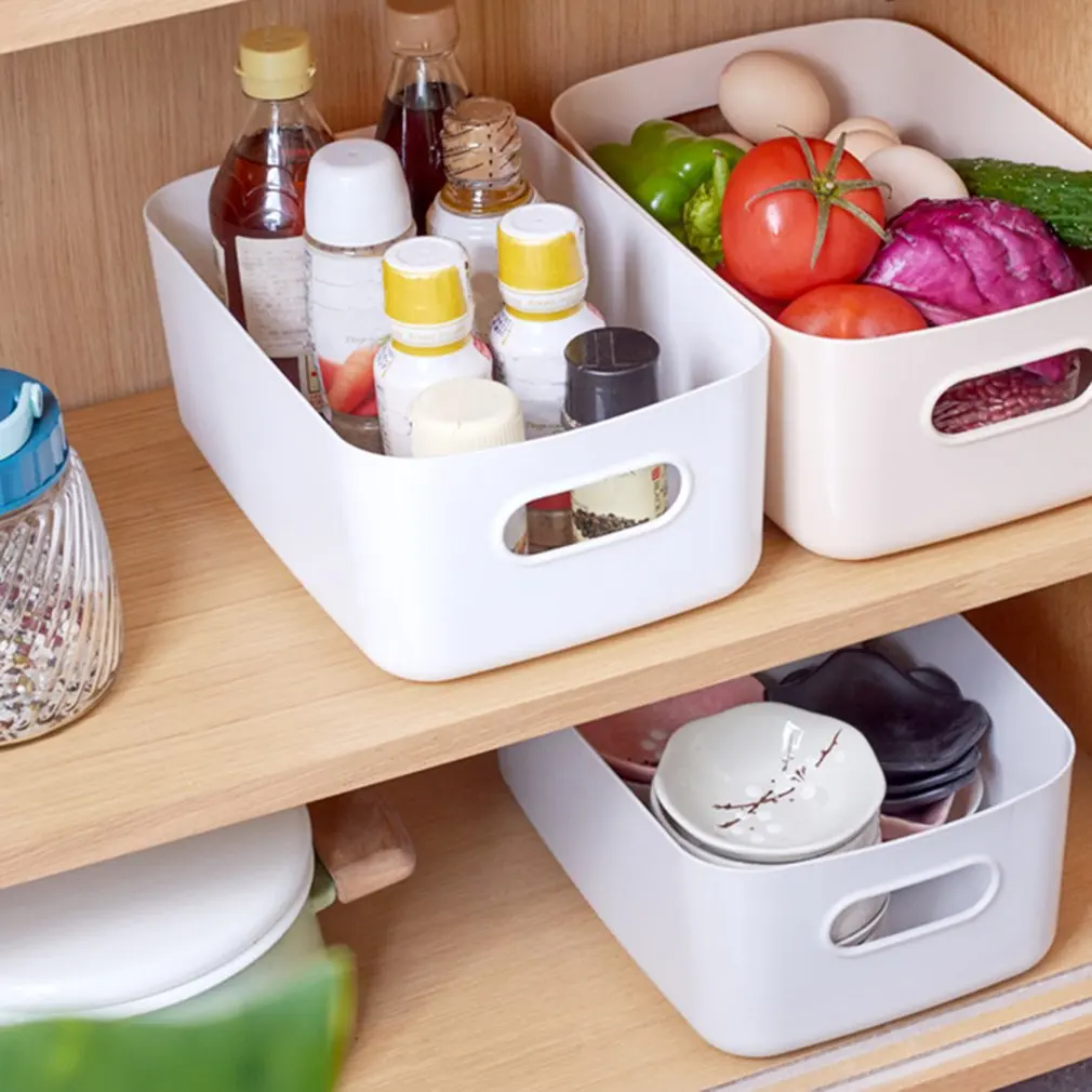 Домашний пластиковый ящик для хранения, органайзер для кухни, коробка для косметики, корзина для хранения для туалета и ванной, Настольная корзина для хранения мелочей