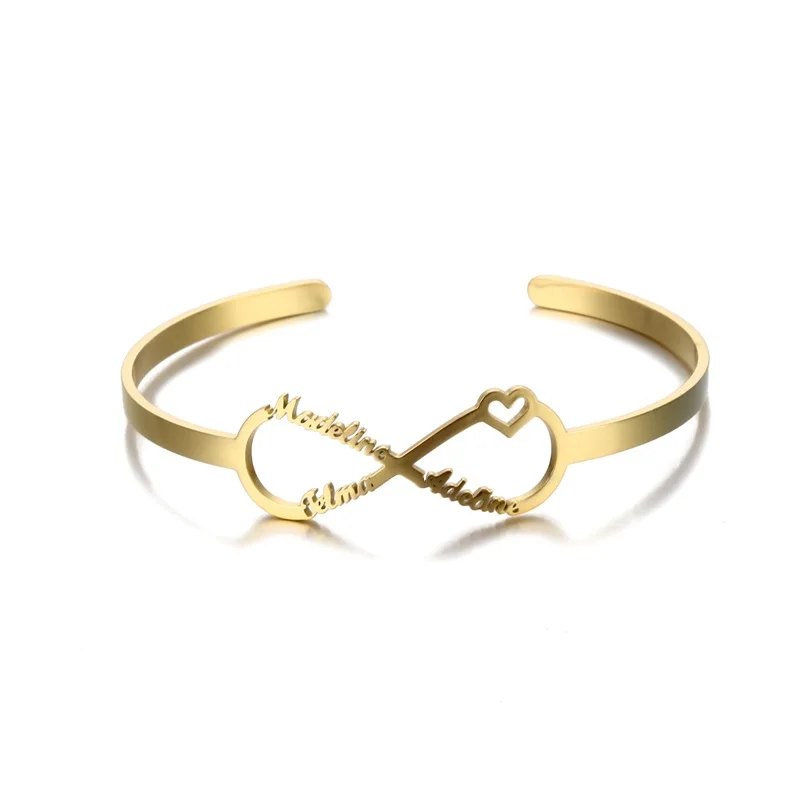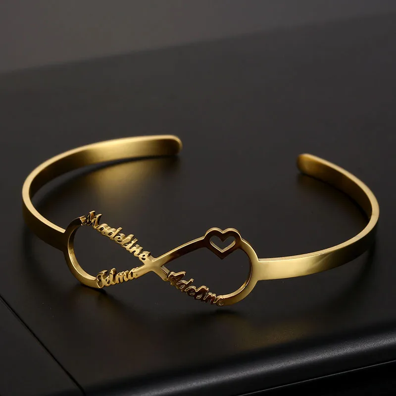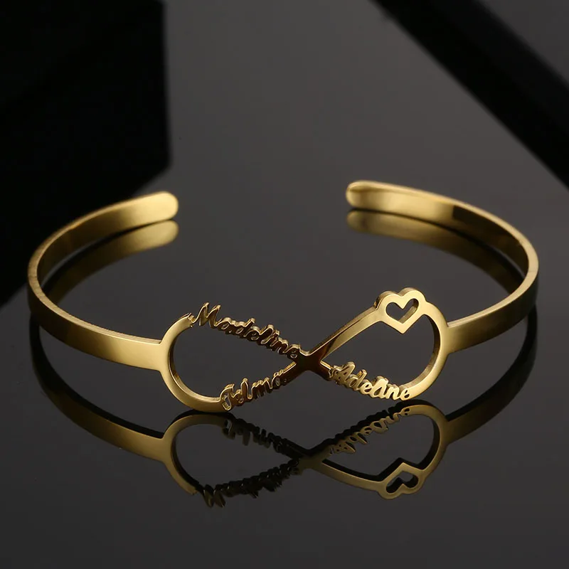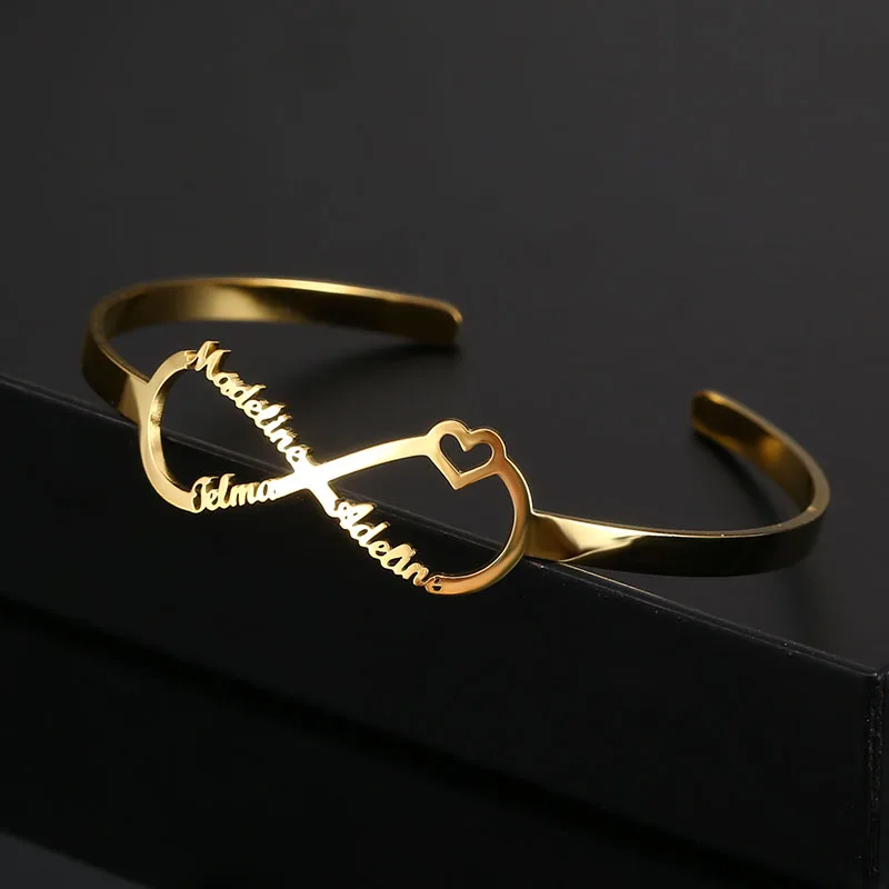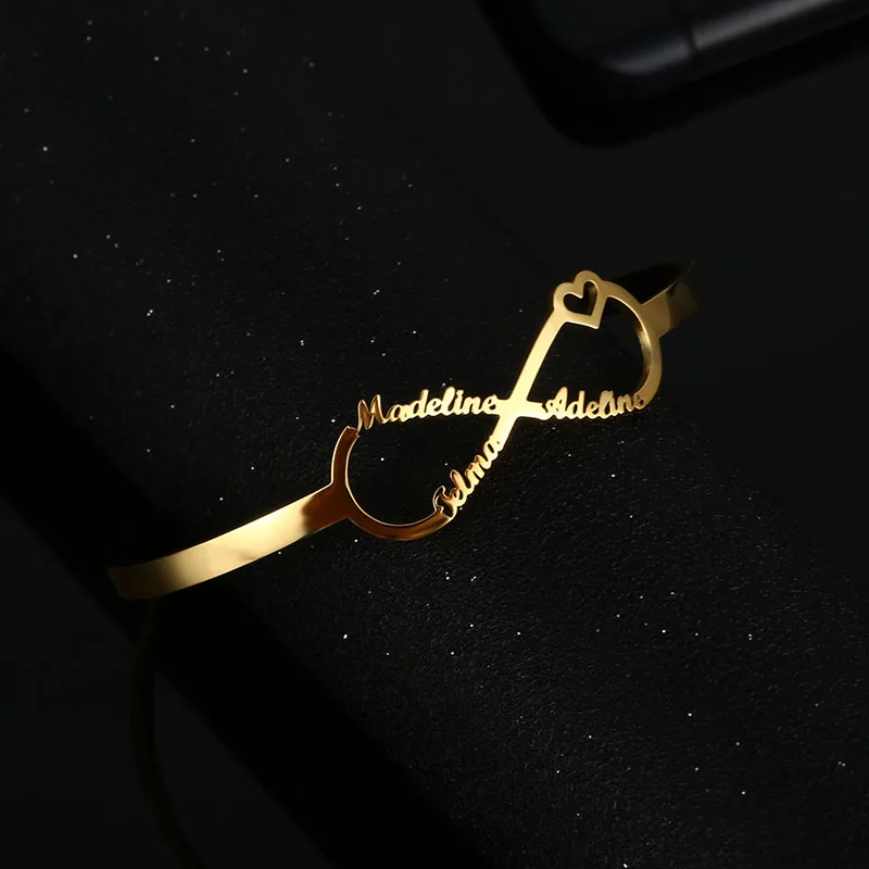 Браслет с именем знака бесконечности на заказ, браслеты для женщин, персонализированный браслет из нержавеющей стали с золотым сердцем и именной табличкой на заказ, ювелирные изделия
