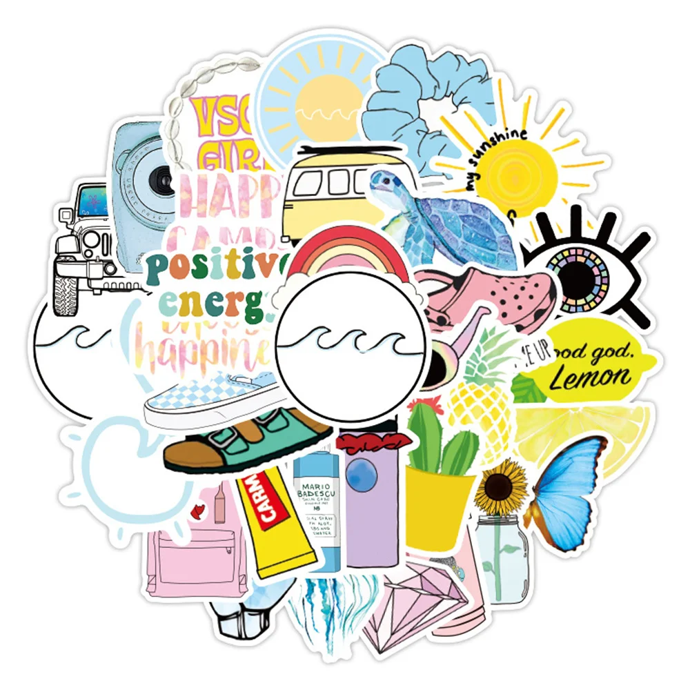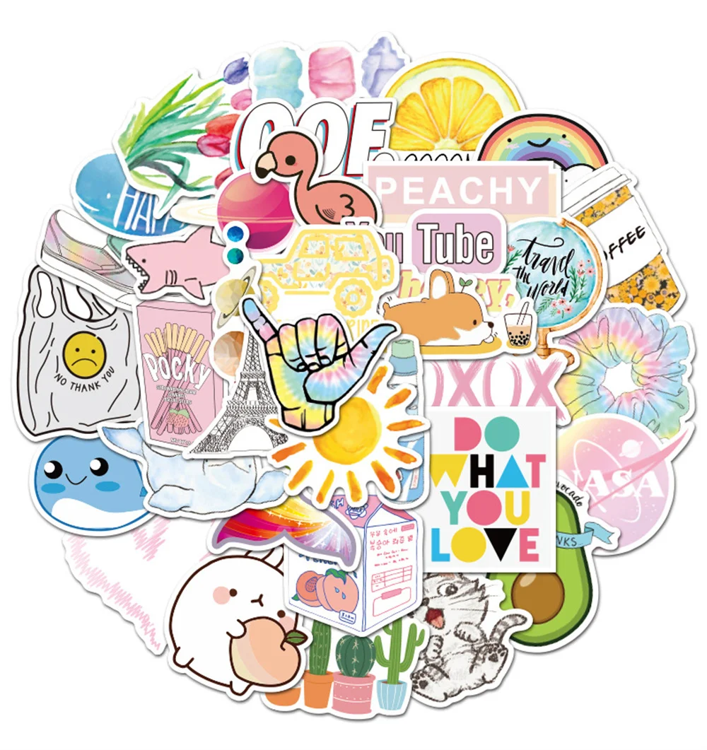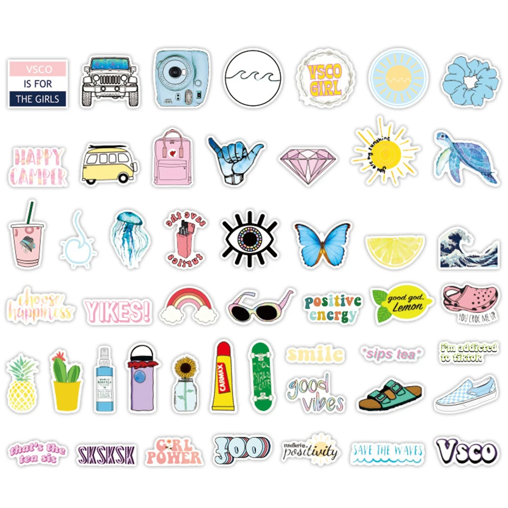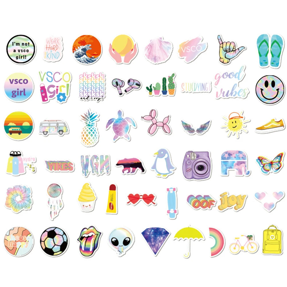 Наклейки для скейтборда VSCO, 50 шт., яркие, свежие граффити, взрыв, багаж, шлем для ноутбука, украшения для скейтборда