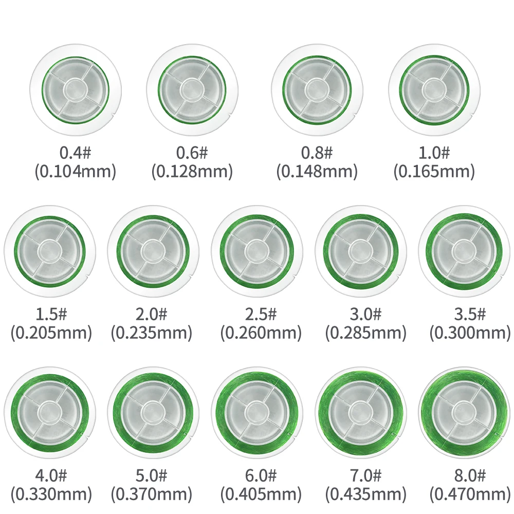 Параметры:Номер лески 1,0 #: 0,165mm / 10LB/4,7 кгНомер лески 2,0 #: 0,235mm / 15LB/6,5 кгНомер лески 3,0 #: 0,285mm / 17LB/7,9 кгНомер лески 4,0 #: 0,325 мм/22 фунта/10 кгНомер лески 5,0 #: 0,370mm / 31LB/14,5 кгНомер лески 6,0 #: 0,400mm / 34LB/15,5 кгНомер лески 7,0 #: 0,450 мм/38LB/17,5 КГНомер лески 8,0 #: 0,500 мм/42 фунта/19,1 кг
