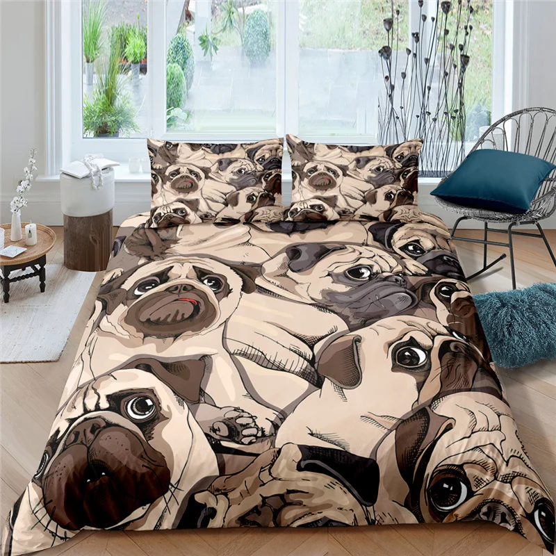 Комплект постельного белья из 23 предметов с 3D-принтом Мопсов