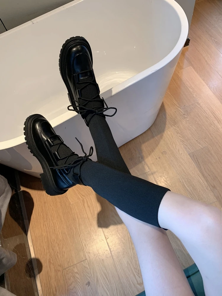 Женские ботинки в стиле панк, повседневные эластичные ботинки-носки, модная женская обувь с перекрестной шнуровкой, ботинки на платформе, готические женские