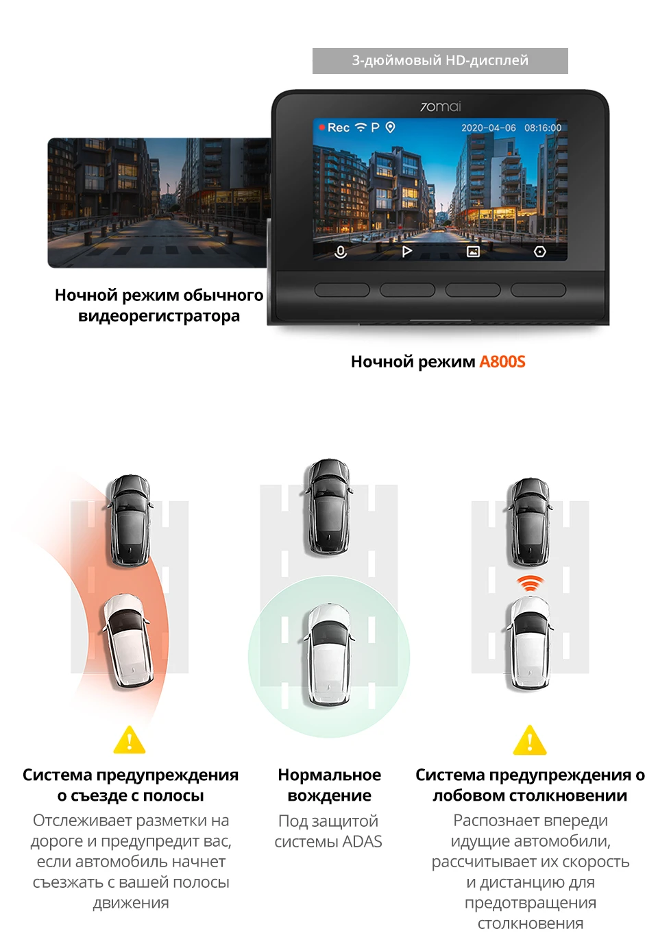 7000-1000: JANHAPPY Видеорегистратор 70mai 4K A800S, автомобильная ...