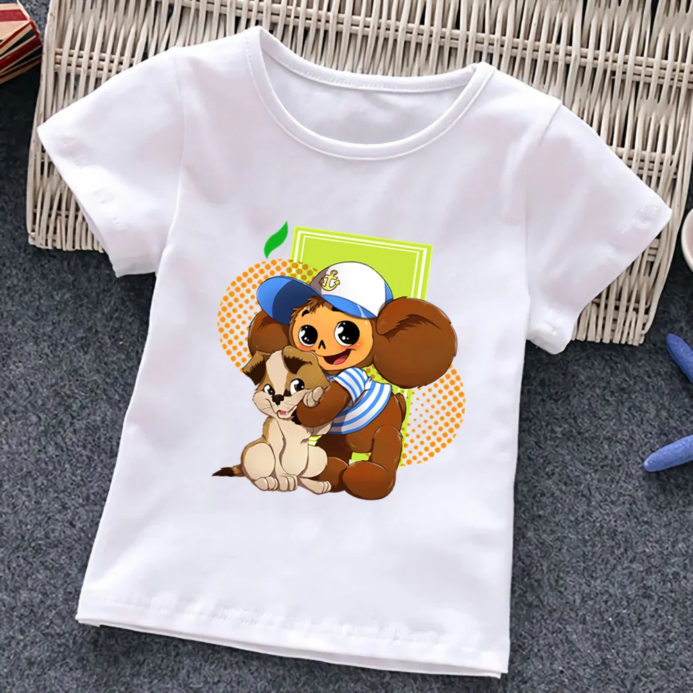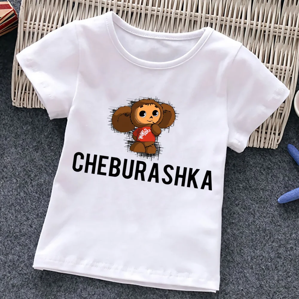 Забавная футболка Чебурашка с мультяшным рисунком для мальчиков и девочек, летняя футболка с принтом, детская белая одежда с коротким рукавом, футболки YKP198
