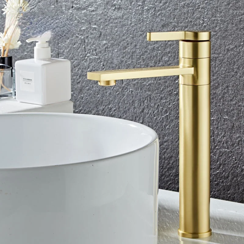Смеситель для ванной из твердой латуни, кран для раковины в ванную комнату, для холодной и горячей воды, матовый золотой кран с одной ручкой для крепления на раковину