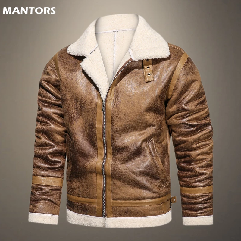 Мужская Зимняя коллекция 2022, флисовая Толстая кожаная куртка, Мот...