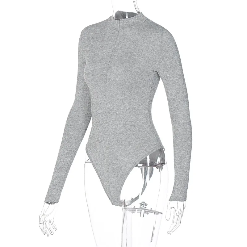 Однотонные облегающие боди на молнии, женские Соблазнительные осенние модные облегающие боди с ложным воротником и длинным рукавом, зимние серые наряды для женщин