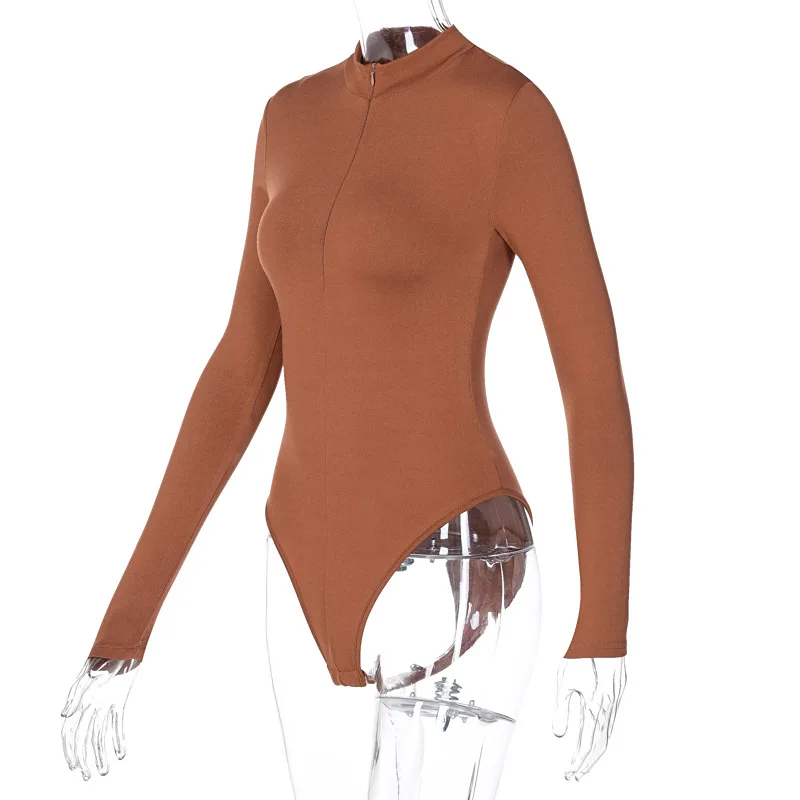 Женское боди на молнии с длинным рукавом и высоким воротником