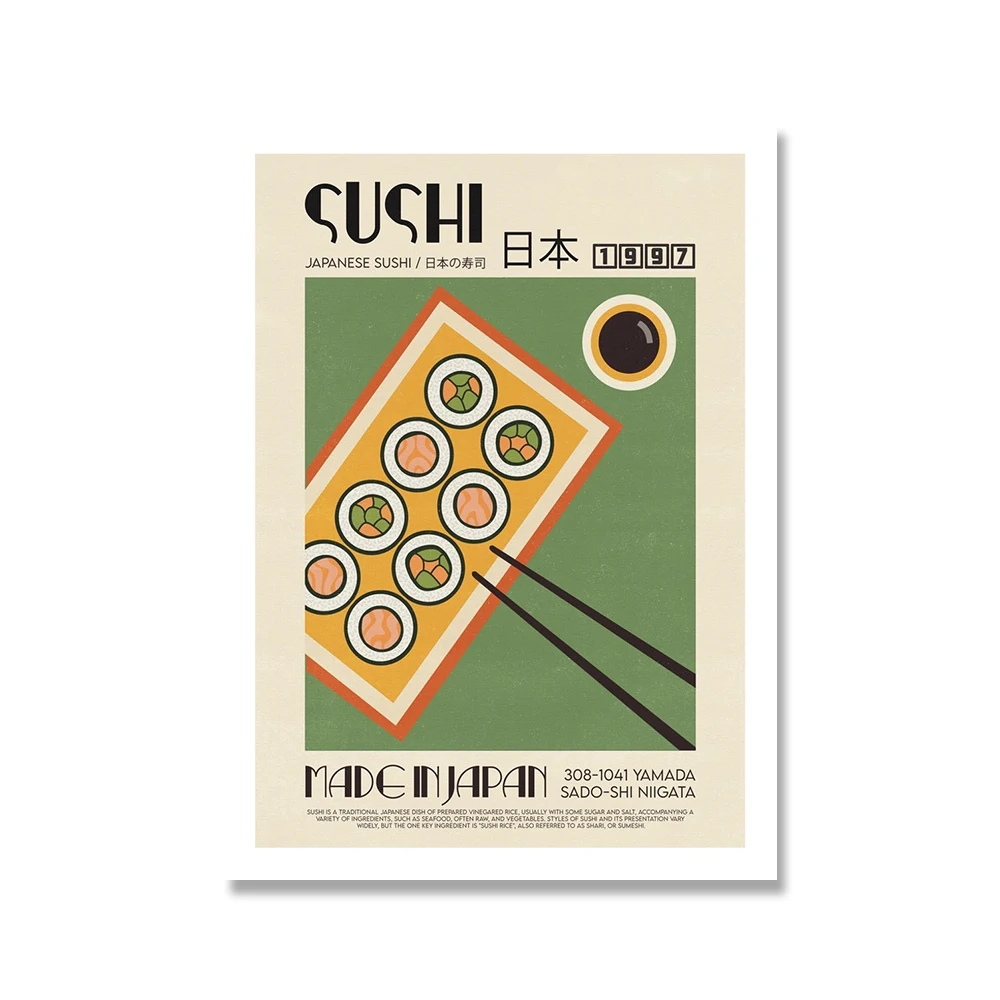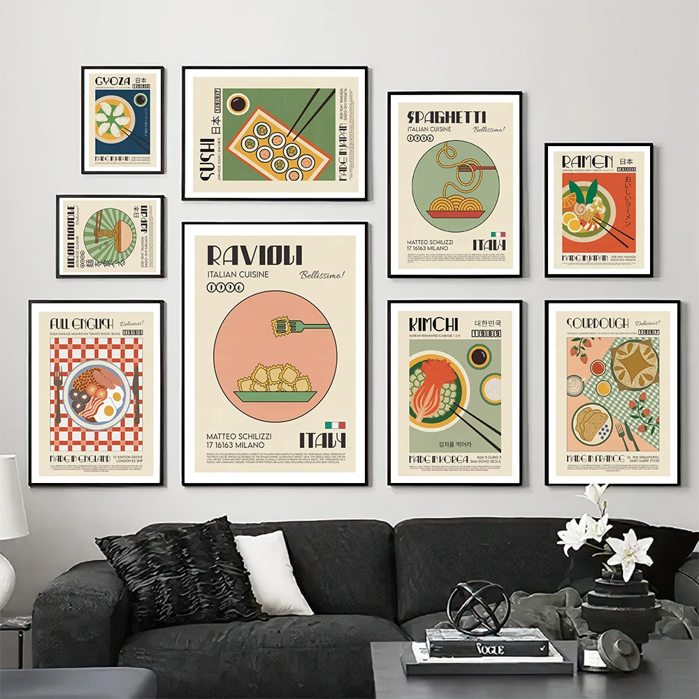 Японская Корейская Настенная картина с изображением еды, мультяшный постер для приготовления лапши, завтрака, кимчи, суши, Картина на холсте, кухонный Декор