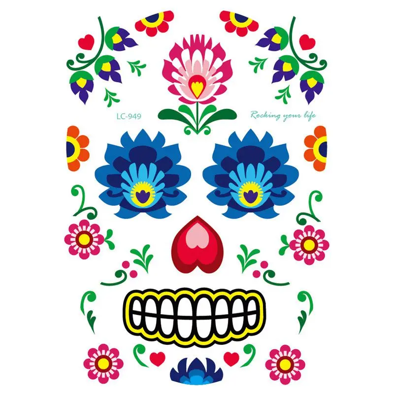 Фотомаска водостойкая временная татуировка наклейка мексиканский день сахара череп маска макияж Вечеринка 1 шт.
