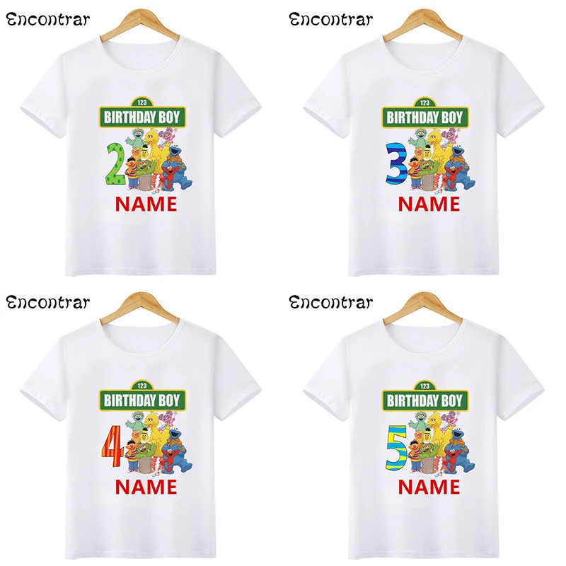 Футболка для мальчиков на день рождения Улица Сезам печенье монстр и Элмо Детские футболки детская одежда для вечеринки, HKP2493