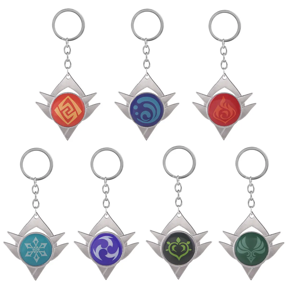 Аниме брелок Genshin Impact с элементом глаза Бога, высококачественным металлическим кольцом для ключей для женщин и мужчин, подвеска для автомобиля, сумки, украшение
