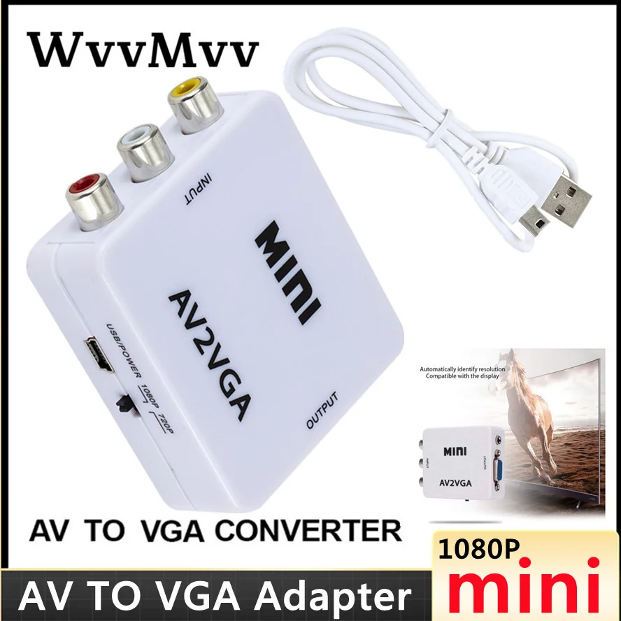Преобразователь видео WVVMVV Mini HD RCA CVBS AV в VGA с 3,5 мм аудио адаптер AV2VGA для ПК на ТВ HD компьютер на 1080P ТВ
