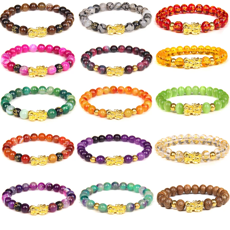 Браслет с натуральными камнями фэн-шуй, браслет с искусственными бусинами, золотой браслет с подвеской Pixiu, браслет с энергией счастья для женщин, богатства, мужчин, подарки