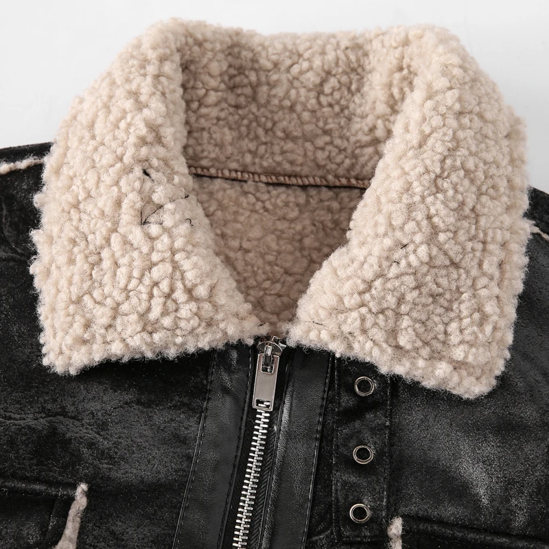Мужская куртка из искусственной кожи, с толстой меховой подкладкой,...