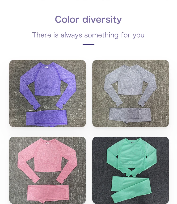 Женский комплект из 2 предметов, бесшовный комплект для йоги, спортивный костюм, спортивная одежда с длинным рукавом, укороченный топ для спортзала, леггинсы с высокой талией, спортивная одежда для фитнеса, комплект из 2 предметов для женщин