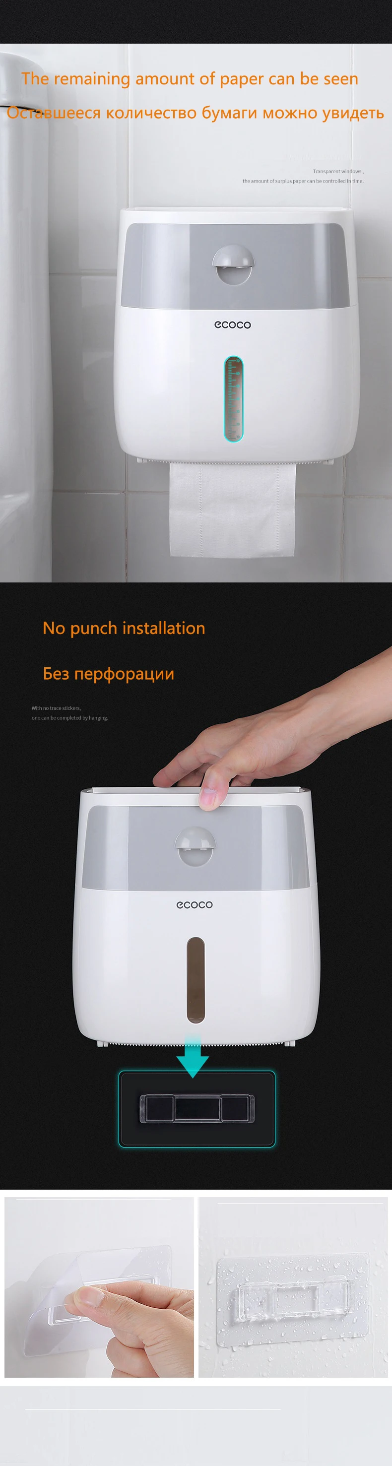 Двухслойная коробка для салфеток ECOCO, настенный водонепроницаемый...