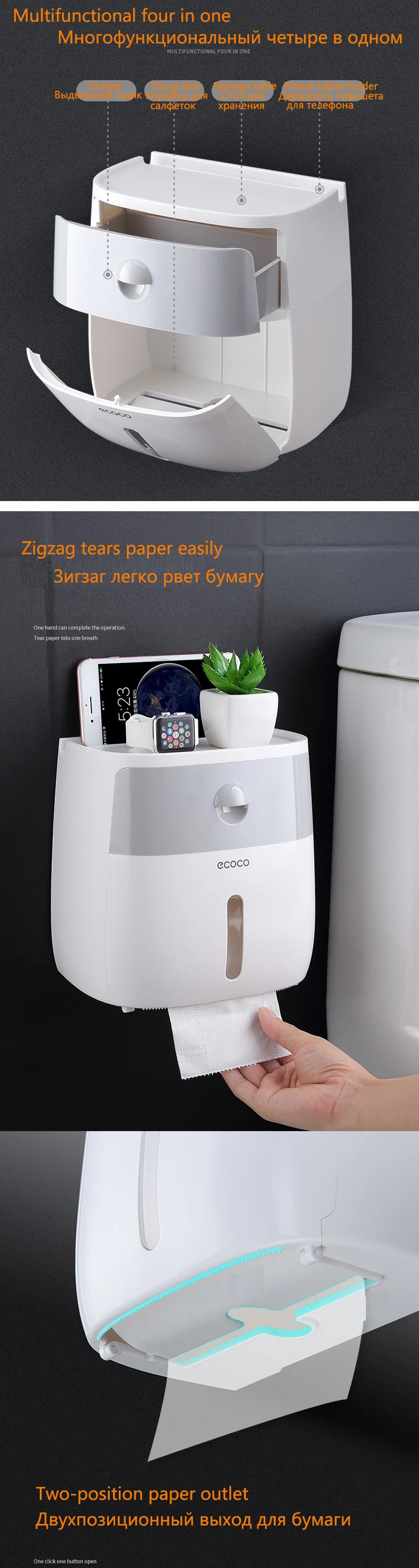 Коробка для салфеток ecoco, настенный, водонепроницаемый диспенсер для салфеток, держатель для бумажных полотенец, коробка для салфеток для ванной комнаты с ящиком для хранения в ванной