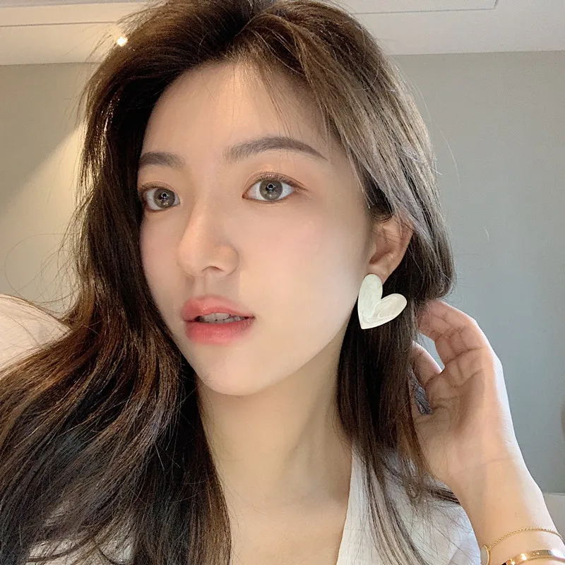 Серьги-гвоздики с большим сердцем белого цвета для женщин и девушек, Корейская любовь, капля глазури, эстетика, Повседневная жизнь, минималистичное ювелирное изделие, пирсинг для ушей