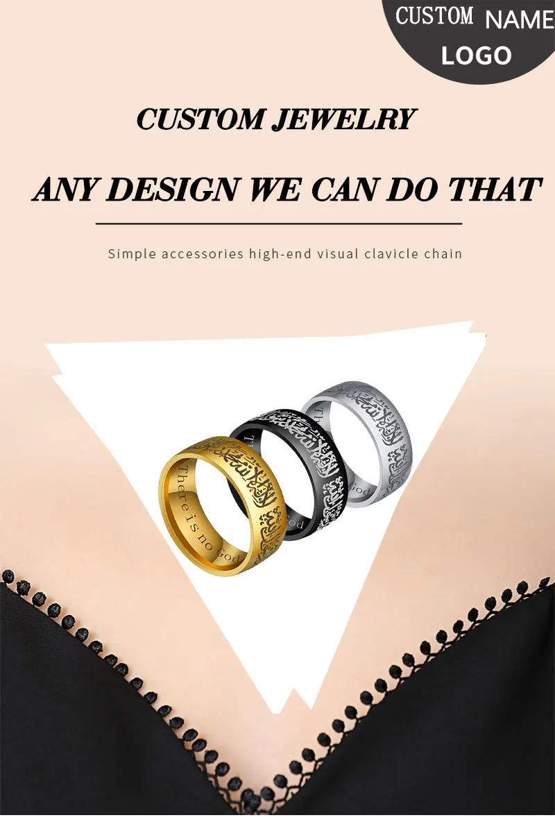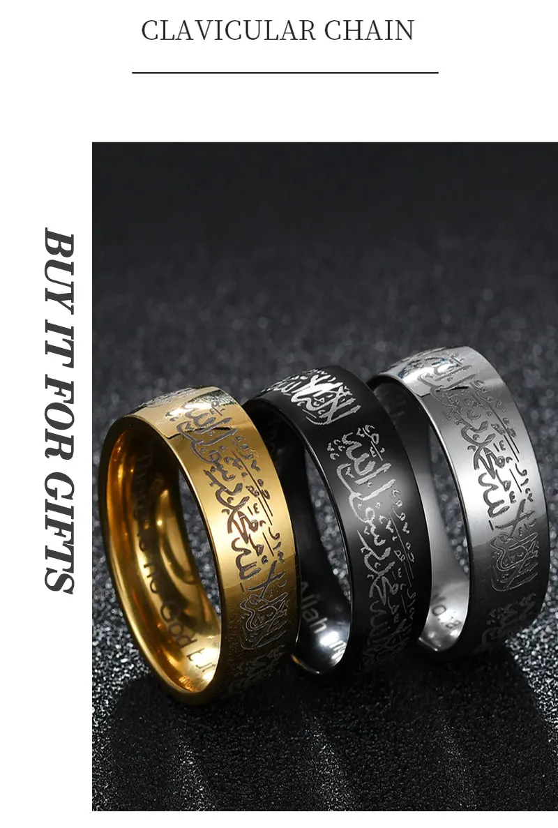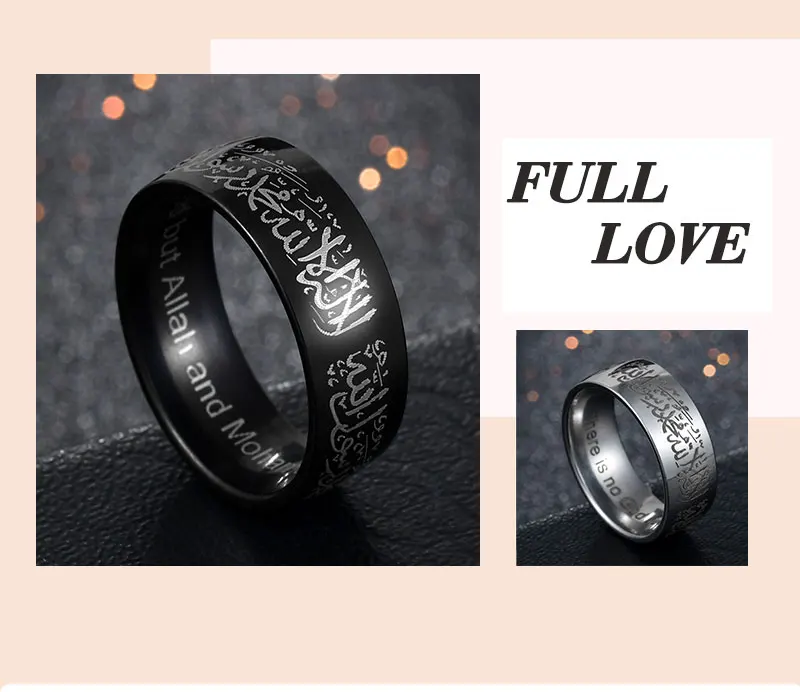 Кольцо унисекс из нержавеющей стали, 8 мм, с арабским и мусульманским надписью, для молитв, праздничные подарки на день рождения