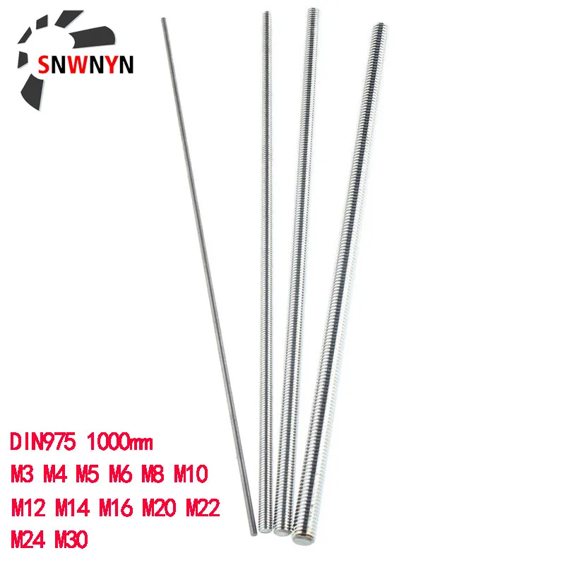 Резьбовой стержень DIN975 полностью резьбовые крепежные стержни серебристого цвета 304 нержавеющая сталь L1000 мм M3 M4 M5 M6 M8 M10 M12 M14 M16 M20 M30