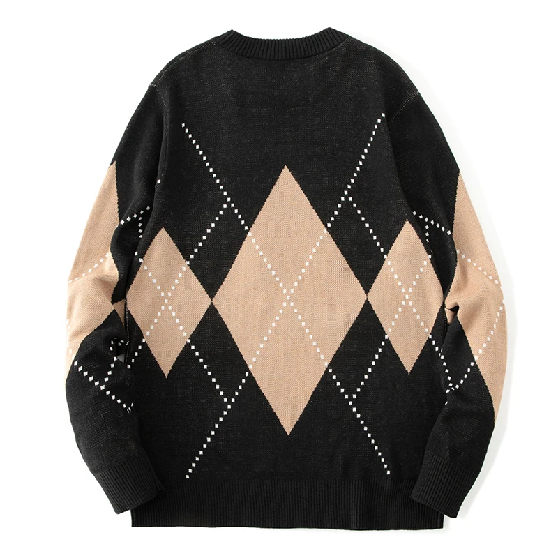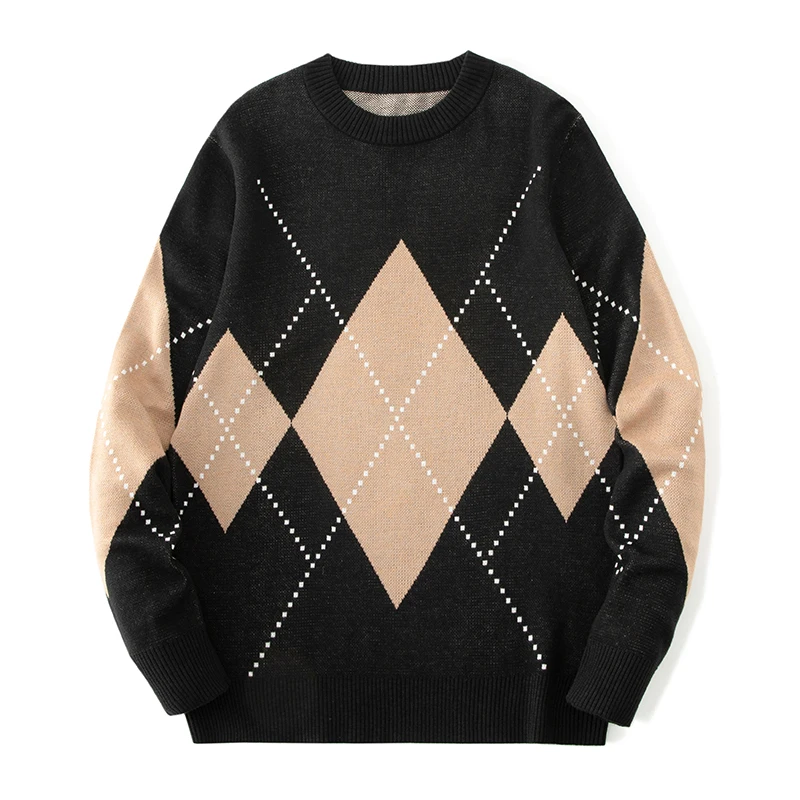 Мужской свитер, вязаный Свободный Повседневный Мужской пуловер с рисунком ромбиками, винтажный свитер с круглым вырезом и длинными рукавами на осень и зиму 2022