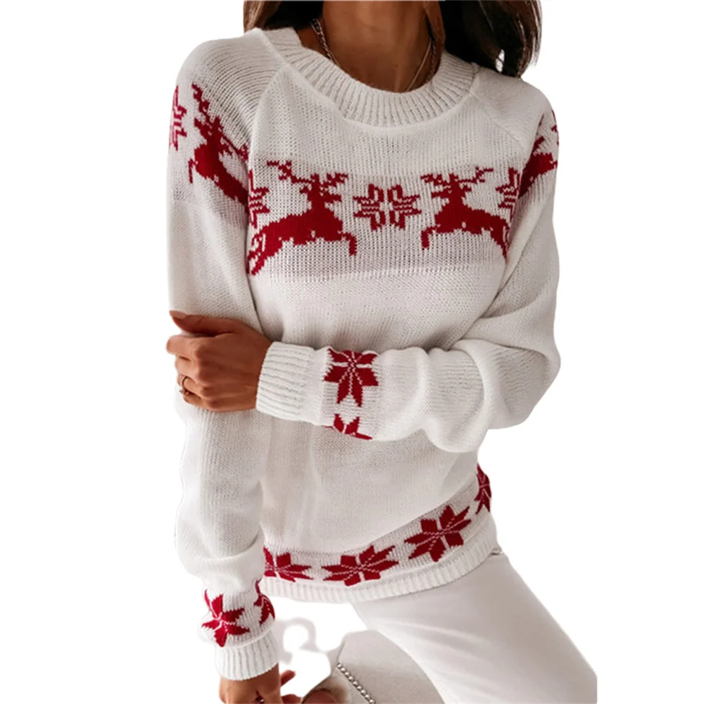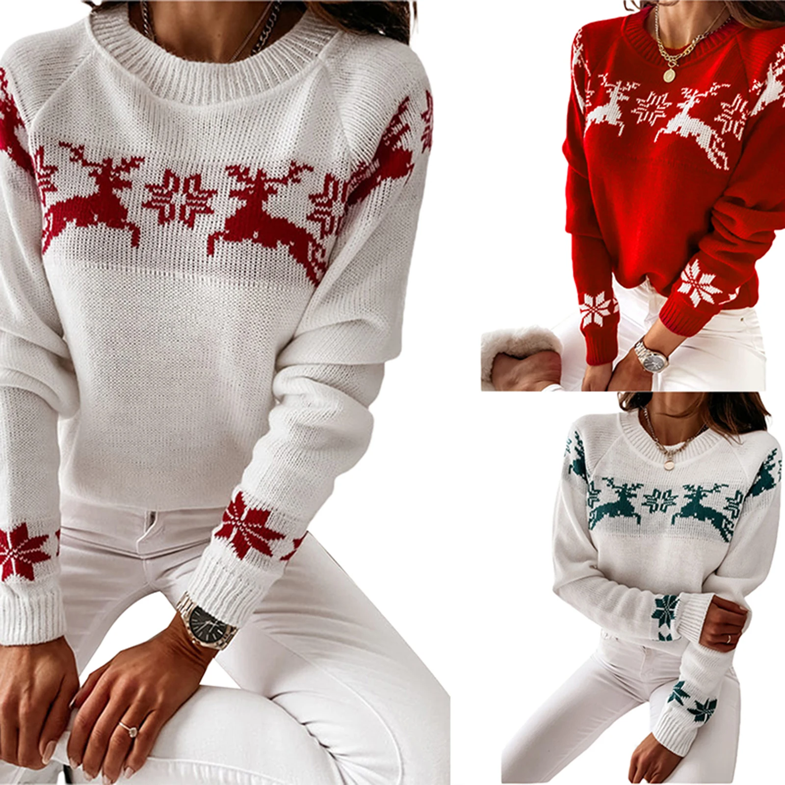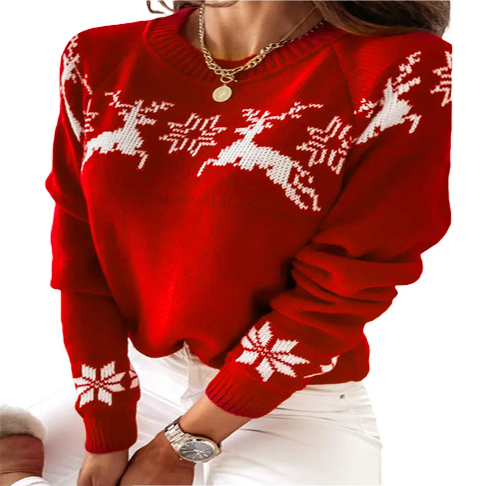 Y2k женские рождественские свободные вязаные топы с круглым вырезом...