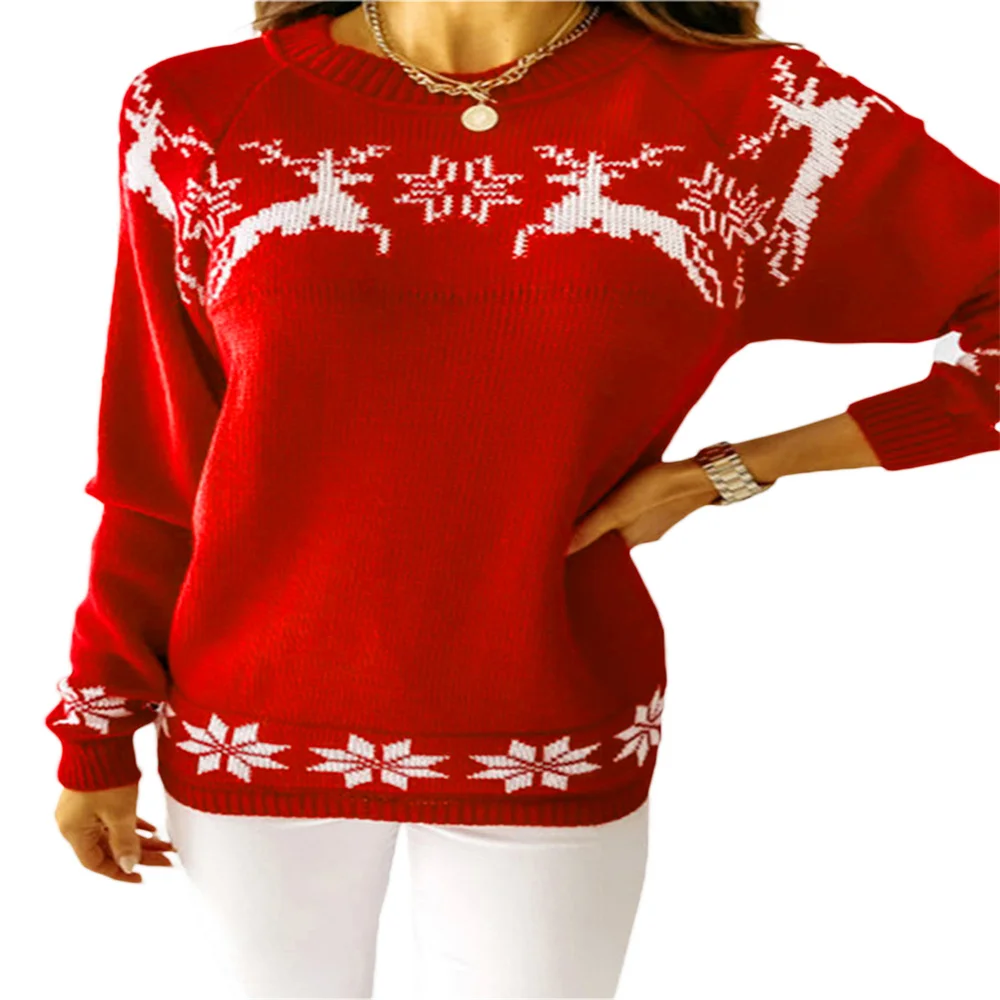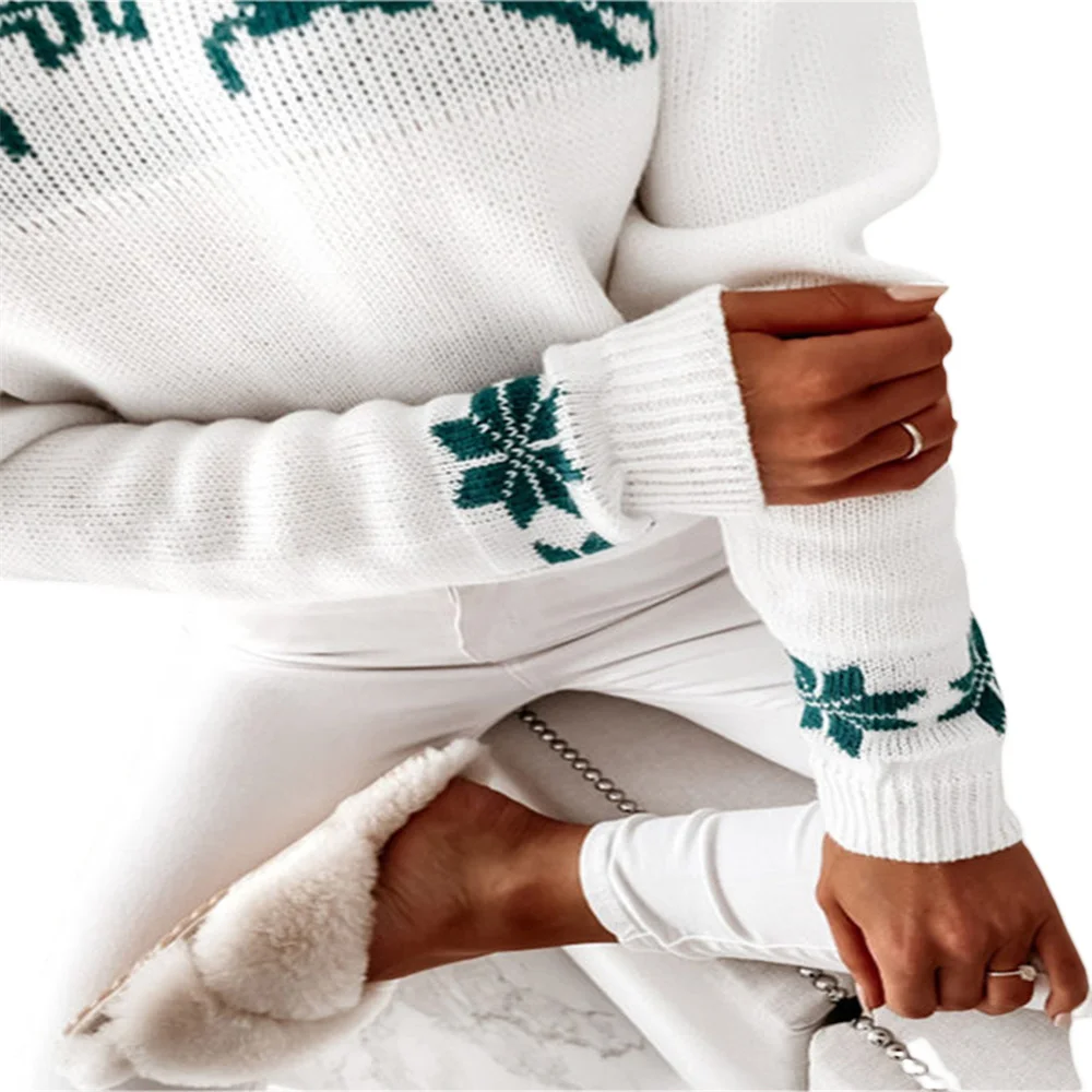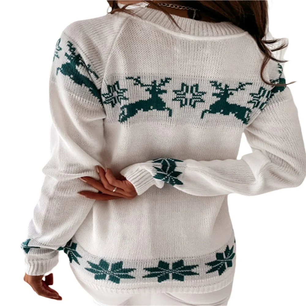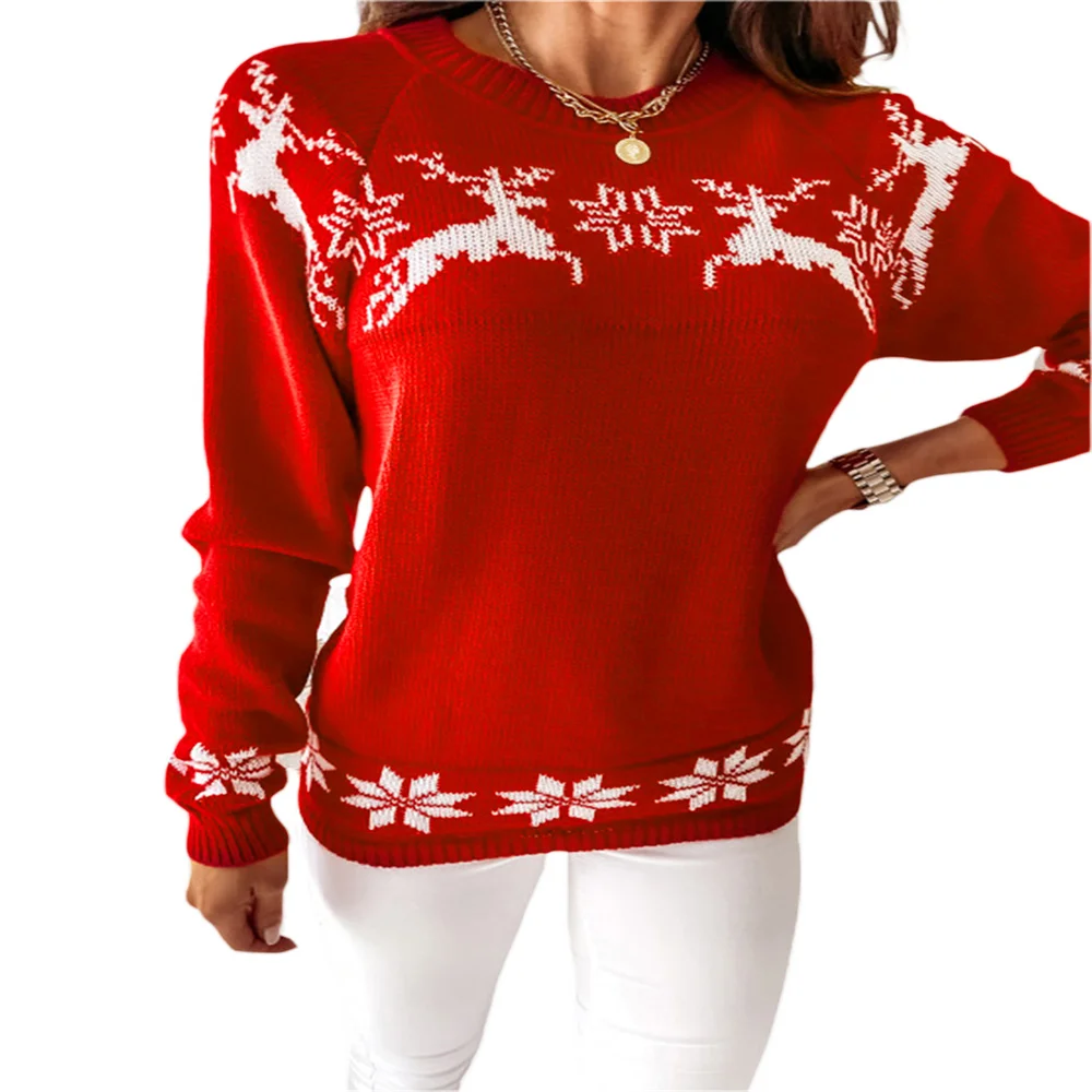 Y2k женские рождественские свободные вязаные топы с круглым вырезом...
