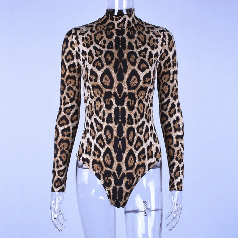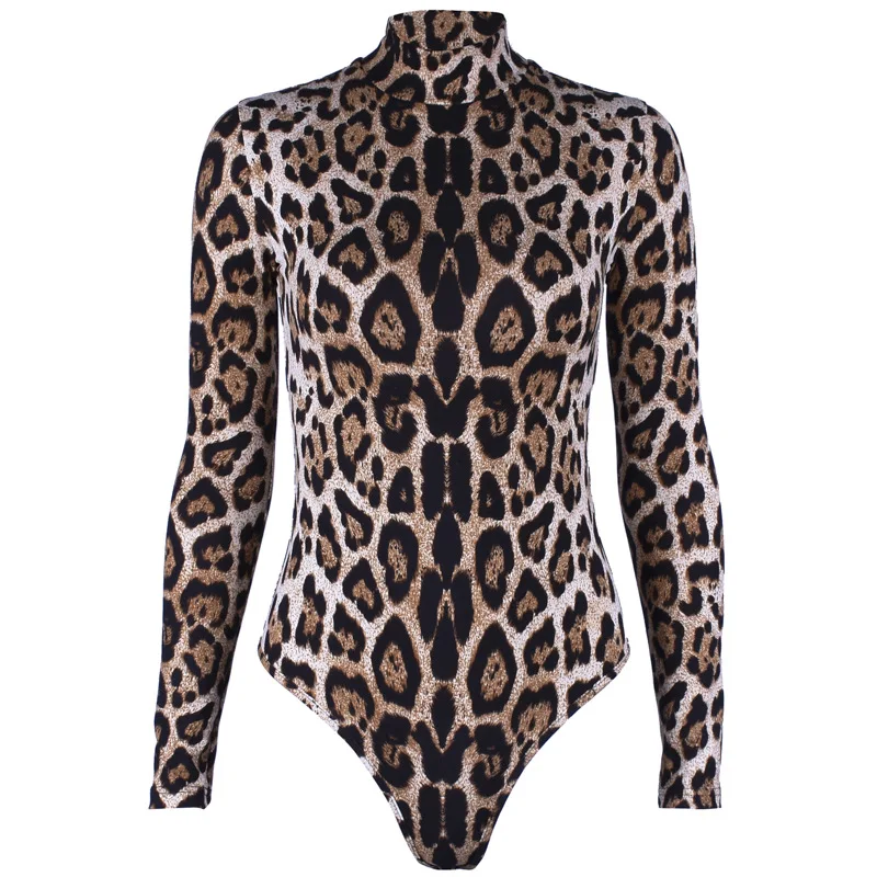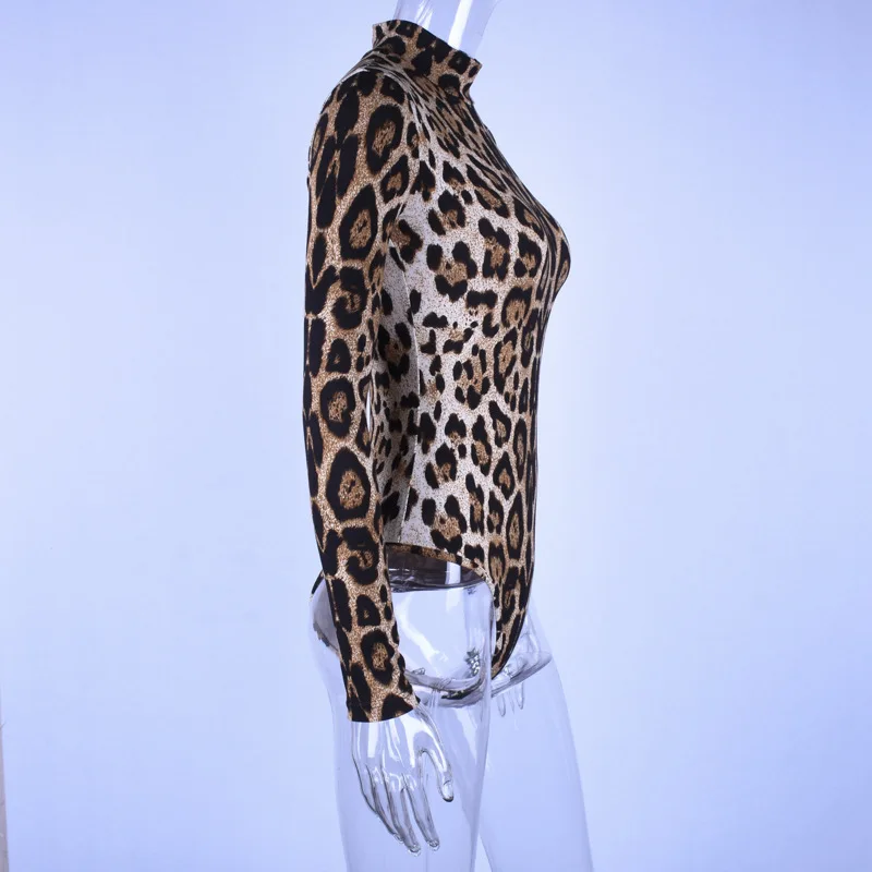 Леопардовый боди Топы 2021 осень с длинным рукавом Водолазка облега...