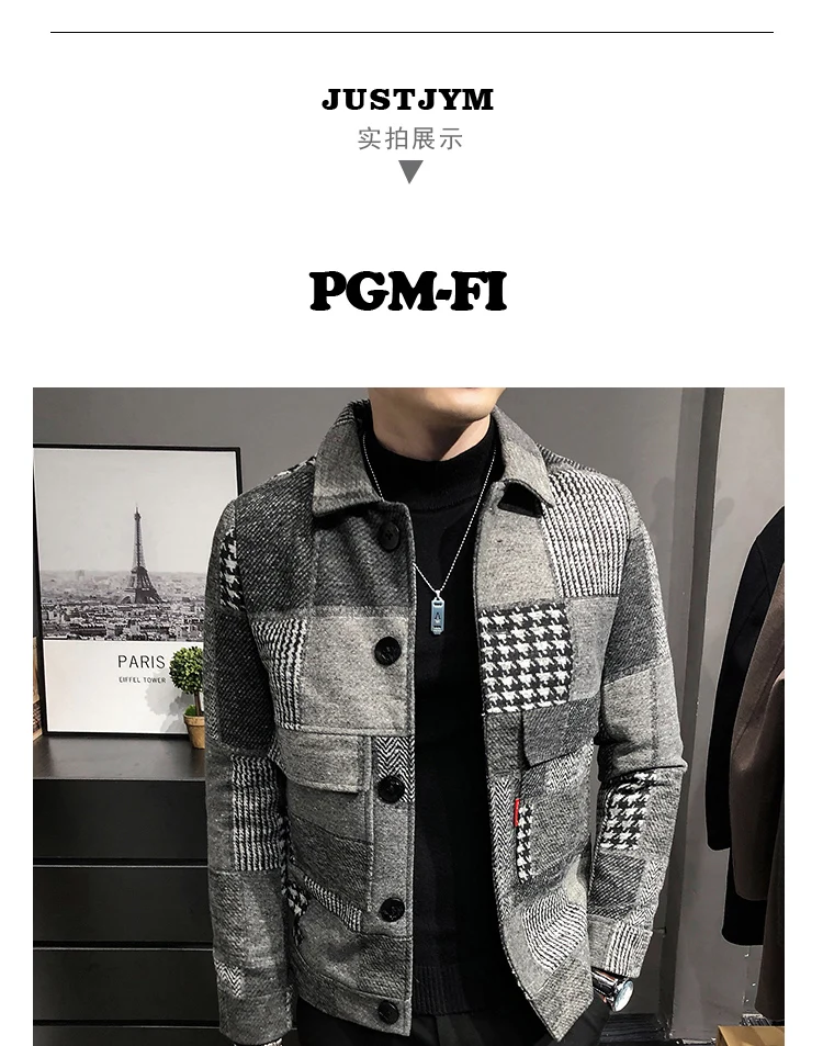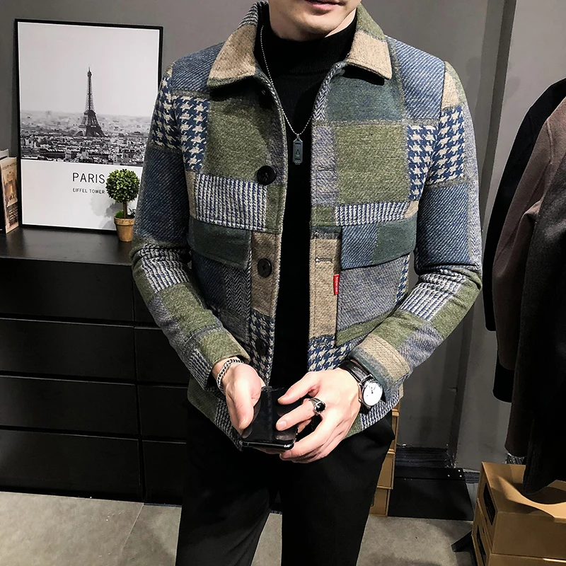 Осень-зима 2022, модная новинка, мужская повседневная куртка без пальто с лацканамиМужское приталенное шерстяное пальто в клетку