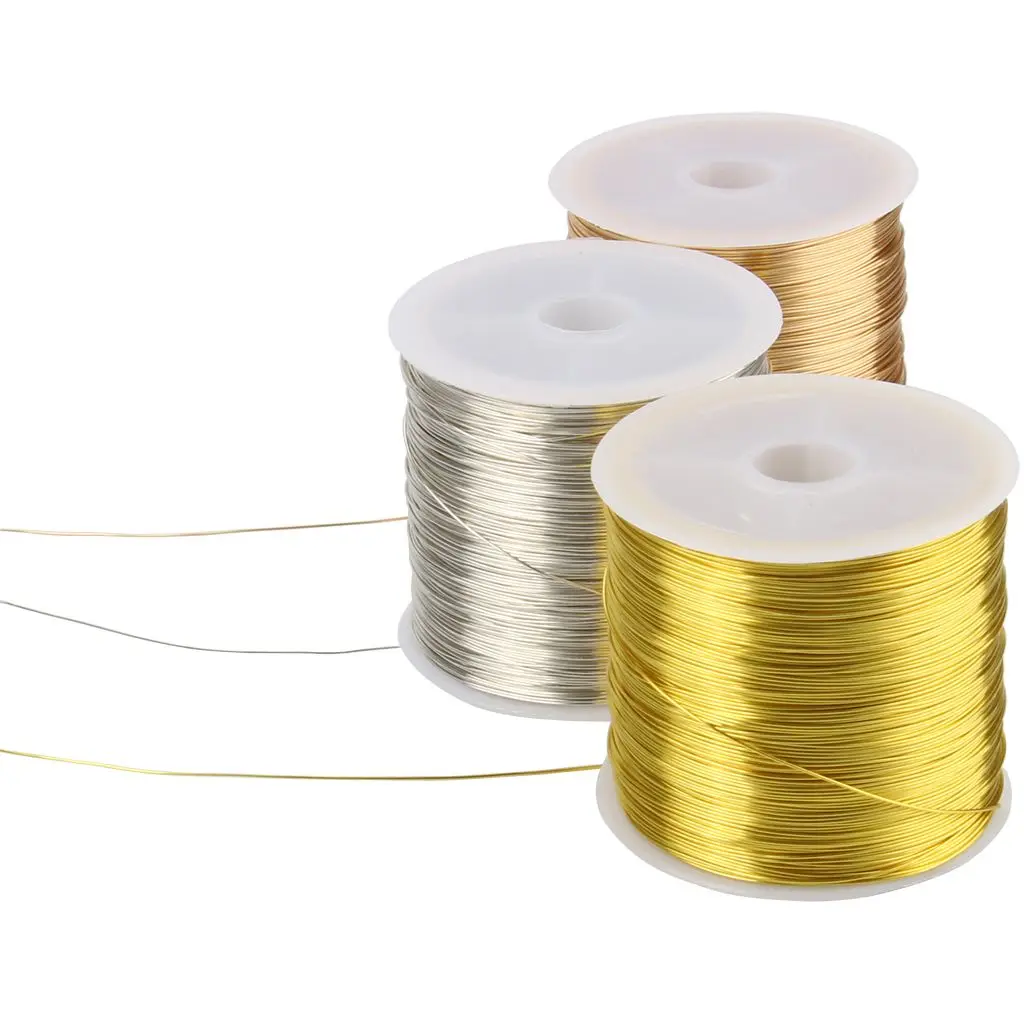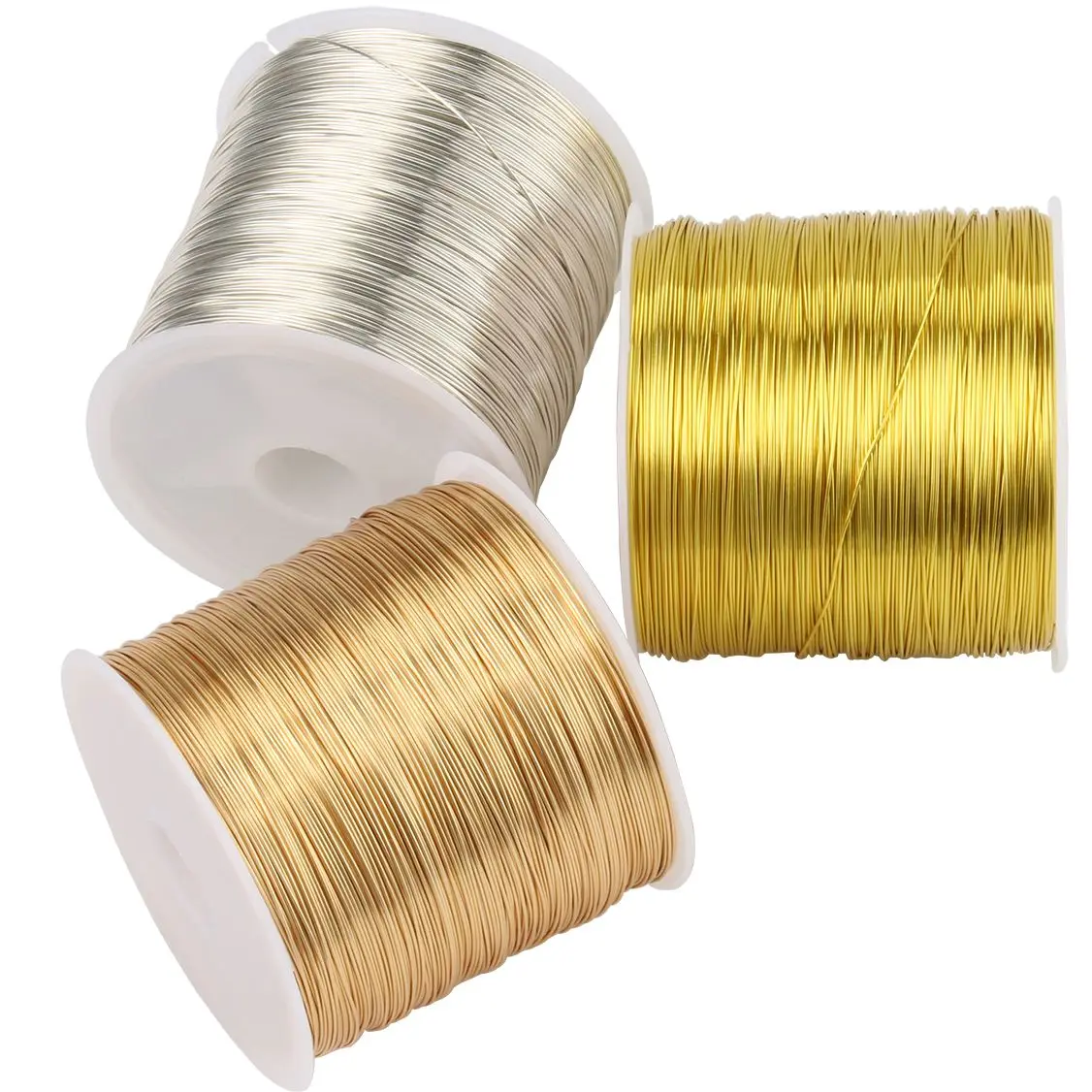 0,3 мм, 0,4 мм, серебристыйзолотойрозовое золото, медный шнур из сплава, проволока для бисероплетения для изготовления ювелирных изделий, ожерелья, браслета, шнур, стандартный