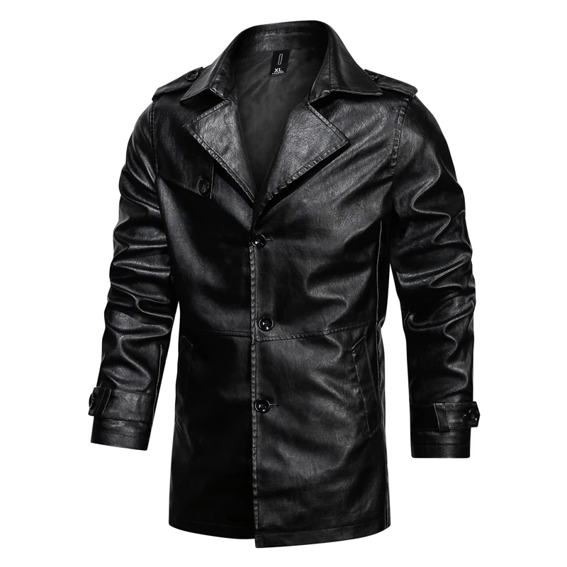 Мужская длинная куртка из искусственной кожи, тренчкот с отложным в...