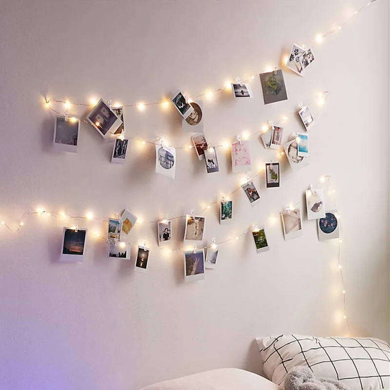 Светодиодная гирлянда с зажимами для фотографий, питание от USB-аккумулятора, сказочные огни для украшения свадьбы, юбилея, Дня Святого Валентина