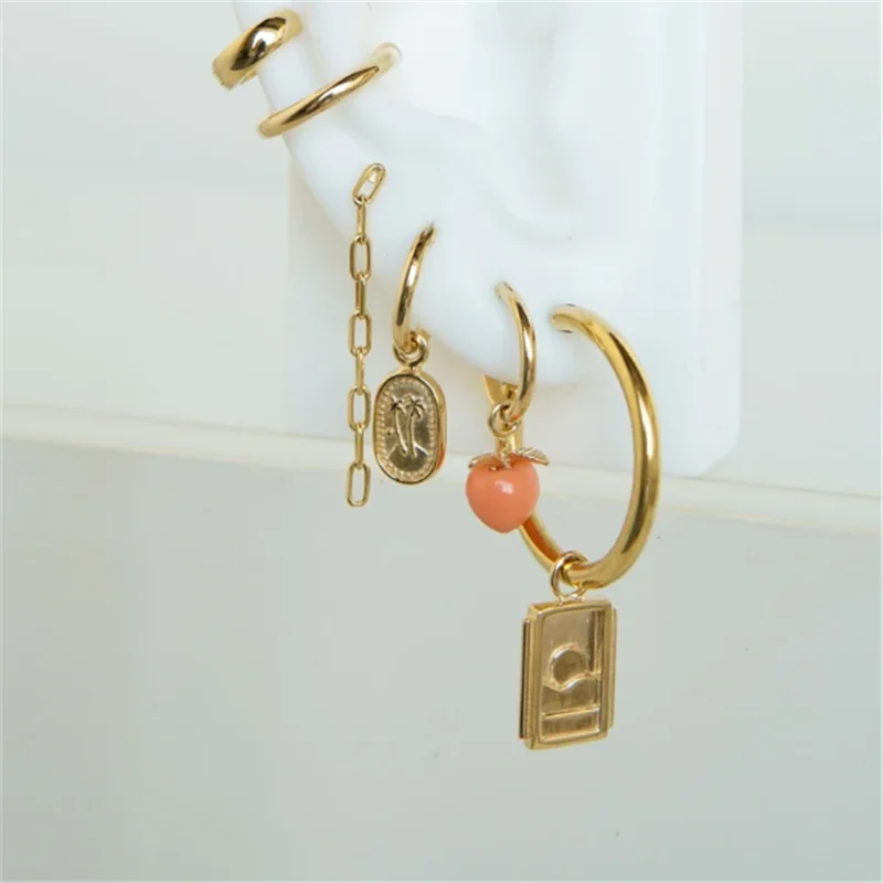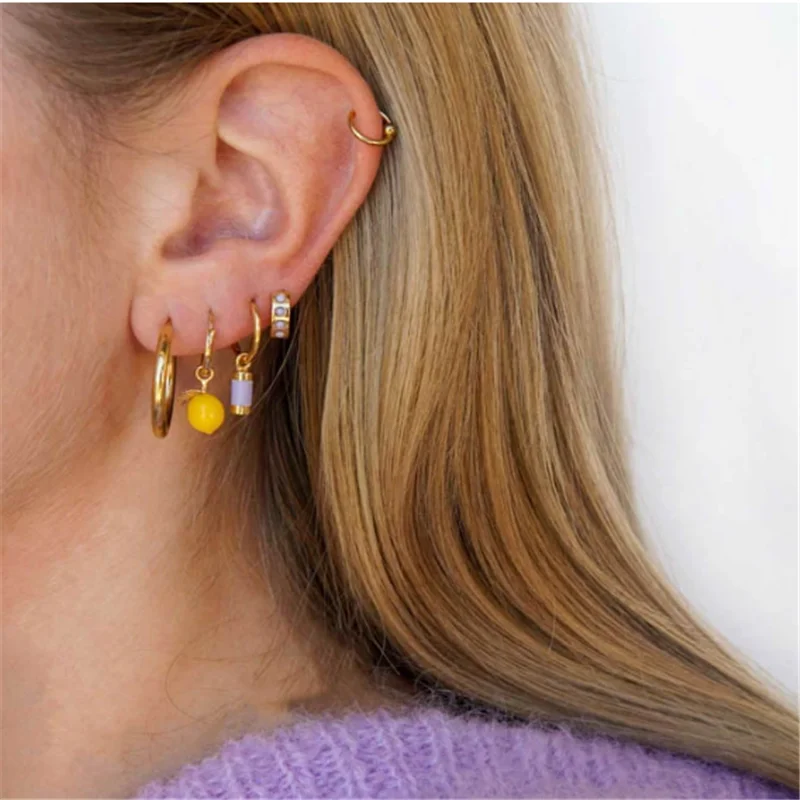 Женские серьги с эмалью и фруктами, Серебристые серьги-кольца с кап...