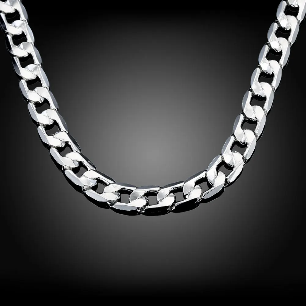925 серебро 12 мм Плоские Боковые ожерелья для женщин мужчин модные...