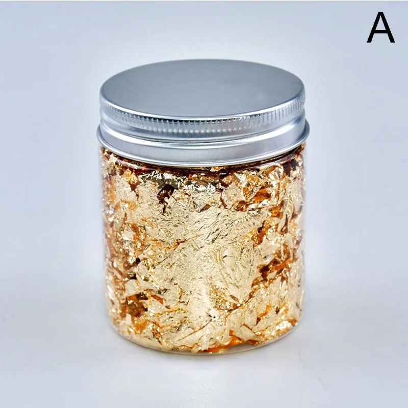Широкое применение: золотые хлопья идеально подходят для ювелирных изделий из смолы, акриловой живописи, дизайна ногтей, создания слизи, фоторамки и другой пасты для рукоделия.