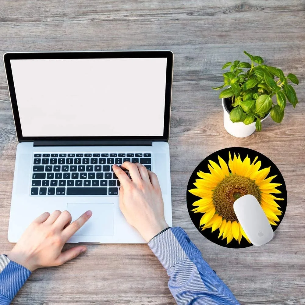 Круглый коврик для мыши, коврик для мыши в виде подсолнуха, игровой коврик для мыши с желтым цветком, водонепроницаемый круглый маленький коврик для мыши с нескользящей резиновой основой
