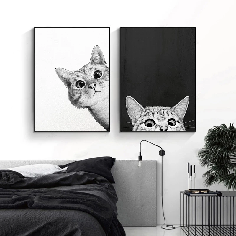 Черно-белые Львы животные Искусство Холст плакат дикий пейзаж живоп...