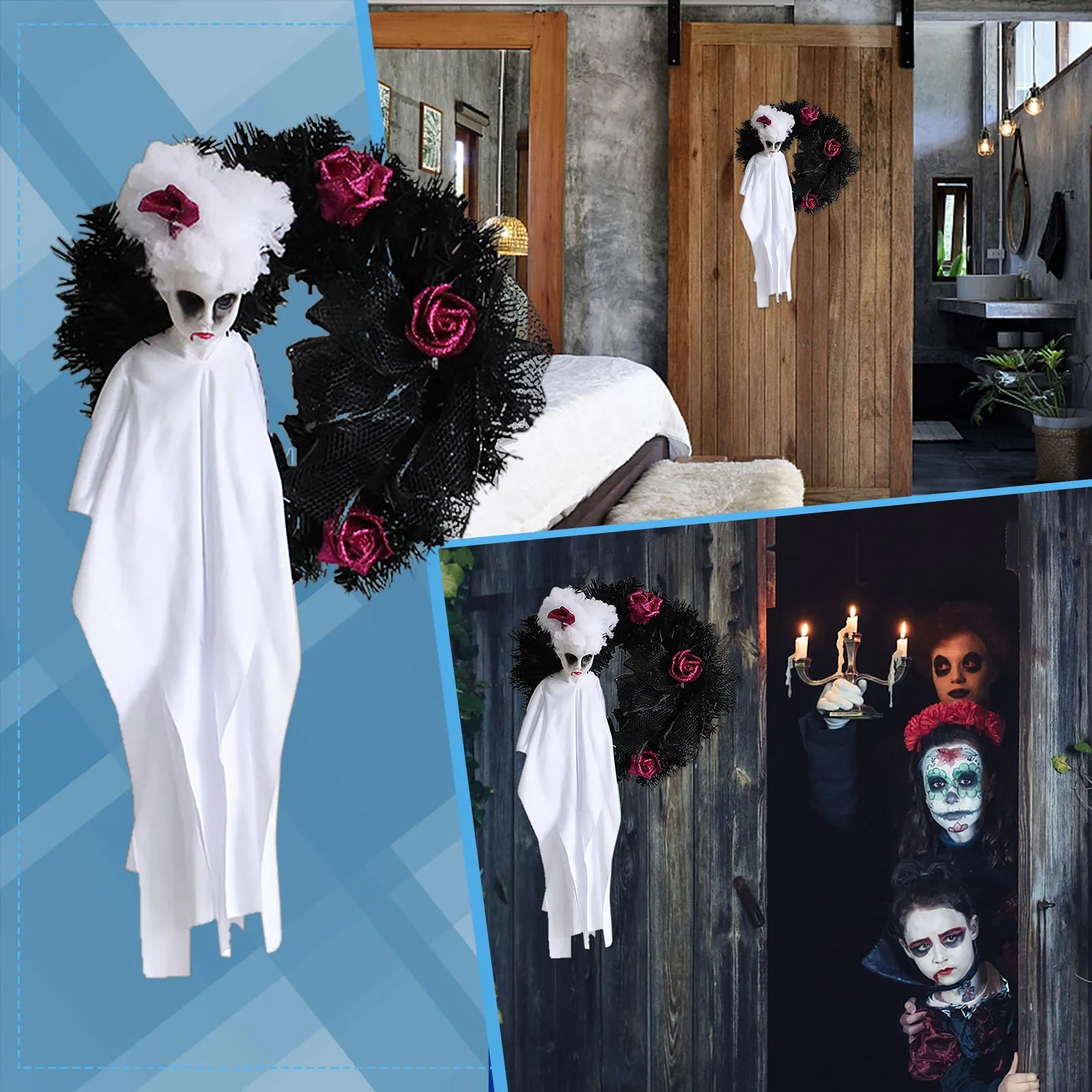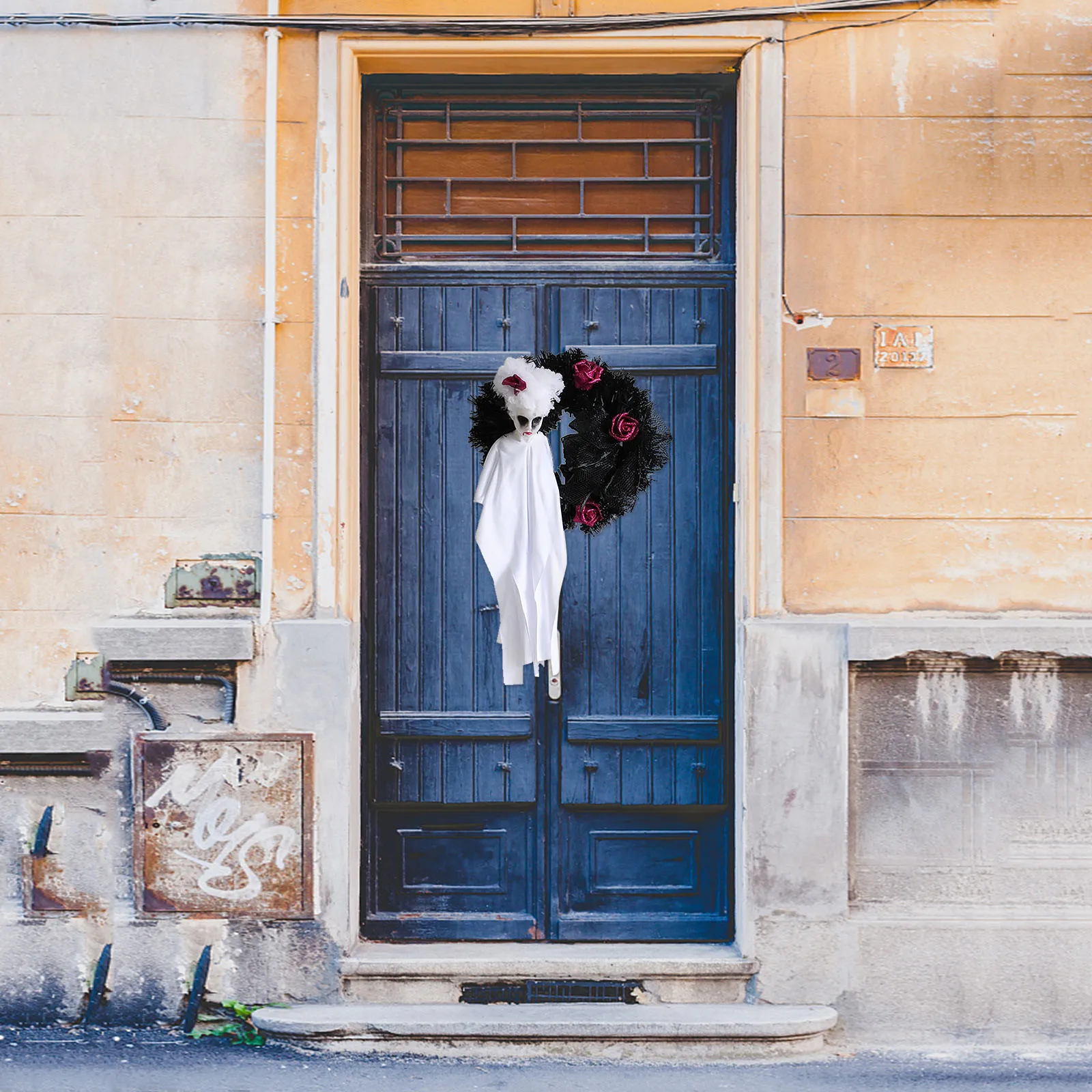 Подвесной венок Призрак для входной двери, гирлянды из ткани, страшный череп, украшение для вечевечерние, Хэллоуина