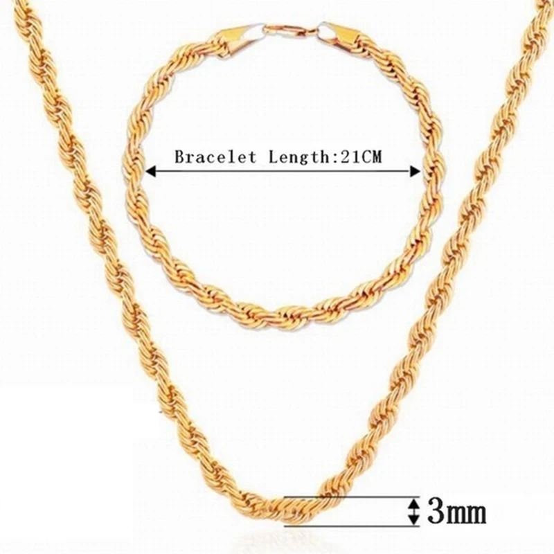 Модные 3 мм из нержавеющей стали витая веревка цепочка ожерелье браслет набор для мужчин женщин хип-хоп Рок Байкерская Свадьба Вечерние ювелирные изделия набор