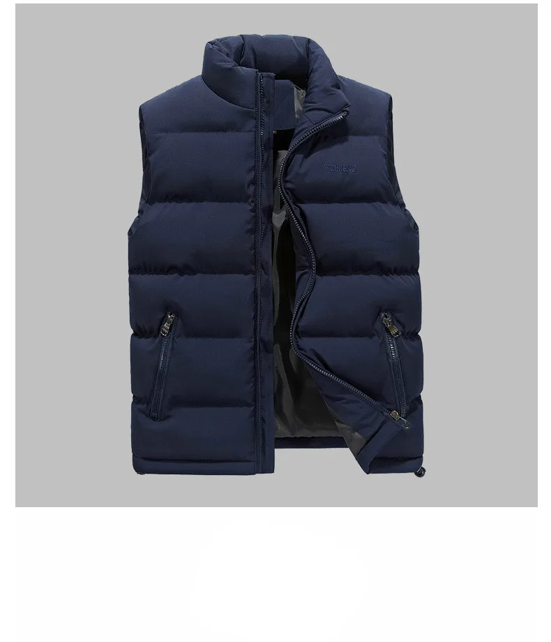 Мужской Хлопковый жилет, утепленный, темно-синий, без рукавов, боль...