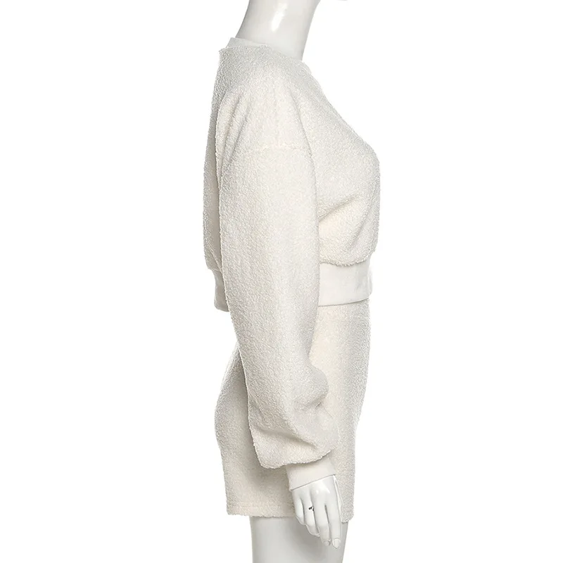 Комплект из двух предметов LZYVOO, осенние шорты, Женский бархатный пуловер из ягненка, топ с сумочкой, шорты с высокой талией, повседневный костюм