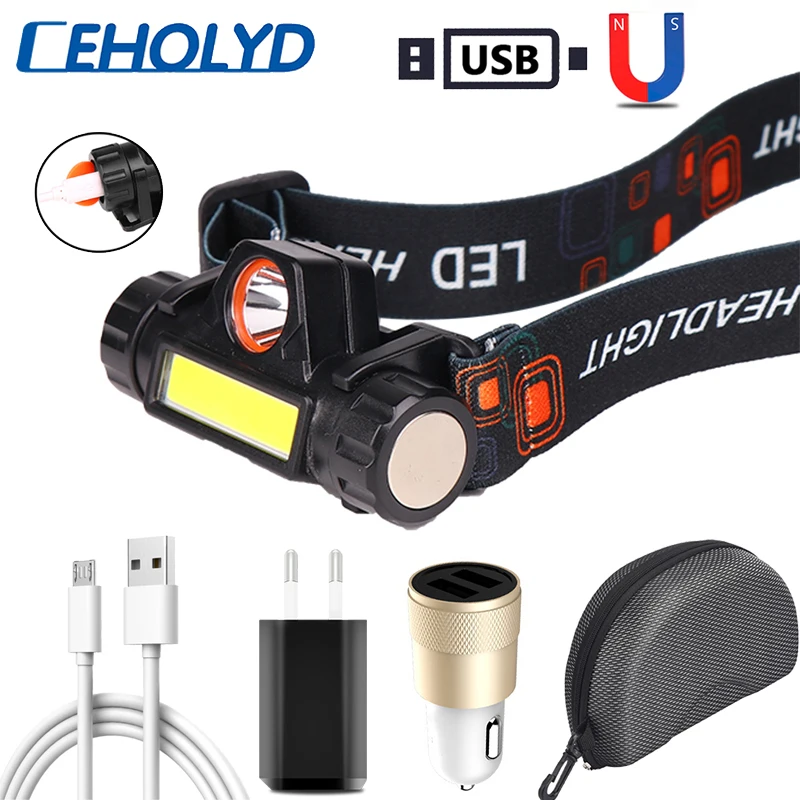 Светодиодный налобный фонарь CEHOLYD с датчиком, Головной фонарь со встроенным аккумулятором 18650, COB светильник ильник для рыбалки, охоты, водонепроницаемый налобный фонарь, вспышка